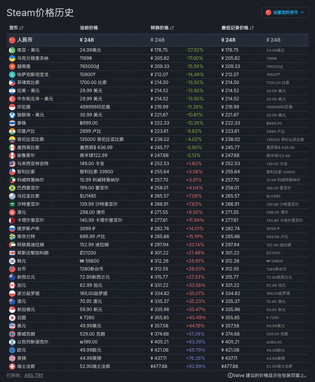關於外區價格永降,有些玩家誤認爲是國區之外的所有區降價。並非,只是部分降價,但漲價的區明顯更多。發行商的迷惑操作,國區不再是最低價。