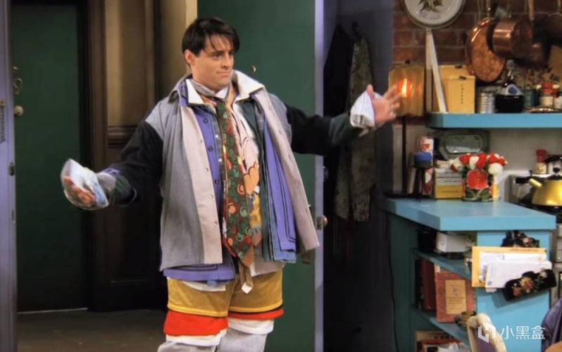 本套内的乔伊的衣服设计来自剧中他穿上了钱德勒的所有衣服的名场面