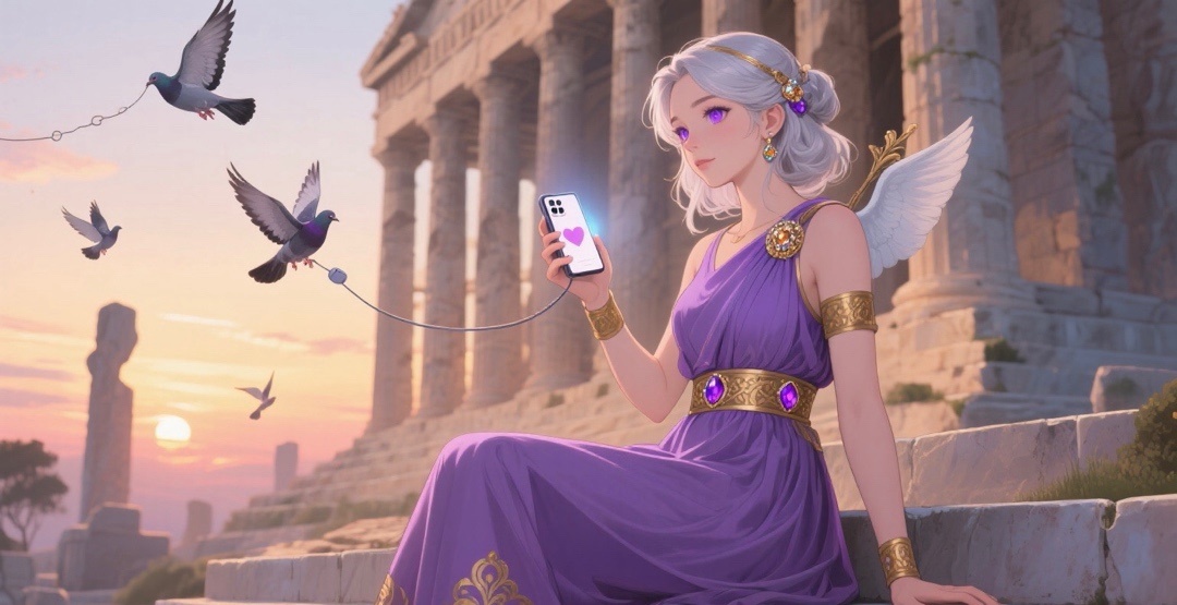 此神身負兩重異名:一爲“單身狗獵殺者”,因常以情愛之事擾得單身神靈心旌搖曳;二爲“古希臘電話之主”,掌凡俗“手機”這柄神器,能通千里之外的音信。每當日落西山,霞光染盡歸墟,此神便取出腰間神器,指尖劃過光幕,開始“傳情之法”。神器亮起時,或有溫柔絮語從中溢出,似是與遠方神祇互訴衷腸;或有甜蜜符文憑空顯現,懸於神舍半空,字字句句皆是情愛玄機。其周身縈繞着粉紅色的“愛戀光暈”,隨話語起落流轉,彷彿要將愛情之神力,播撒到歸墟的每一個角落,讓諸神皆能窺見情愛的模樣。