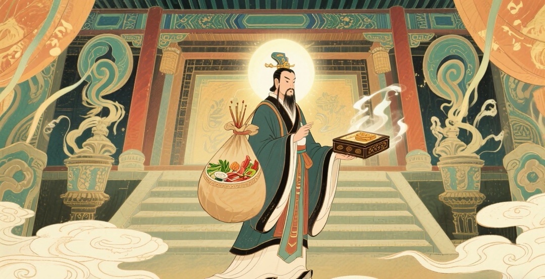 此神身攜乾坤袋,袋中藏有各界食香,凡到辰時、午時、酉時三刻,便見神光一閃,神已立於膳堂雲階,從不誤了分毫。此神心善,常往返於膳堂與歸墟之間,爲沉眠于歸墟中的神靈傳遞食盒。歸墟之中因有此神,便無飢腸轆轆之虞。