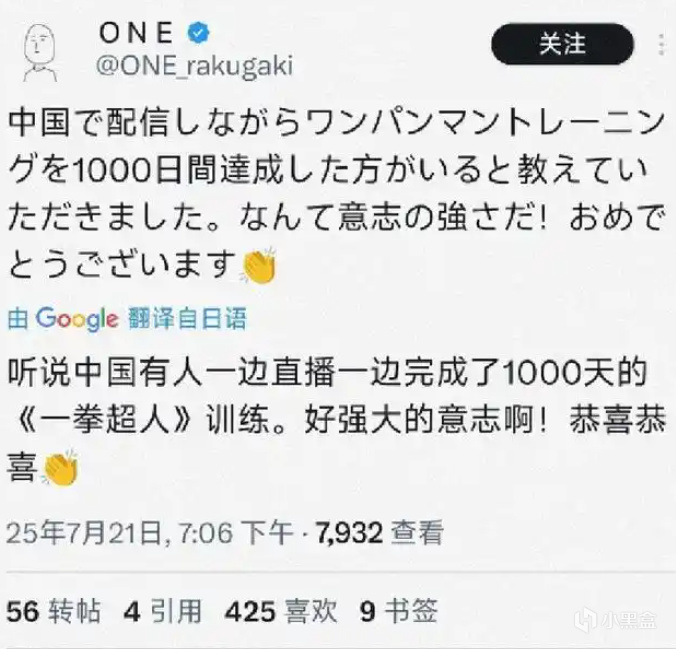 《一拳超人》漫畫原作者ONE老師得知後也發文祝賀!