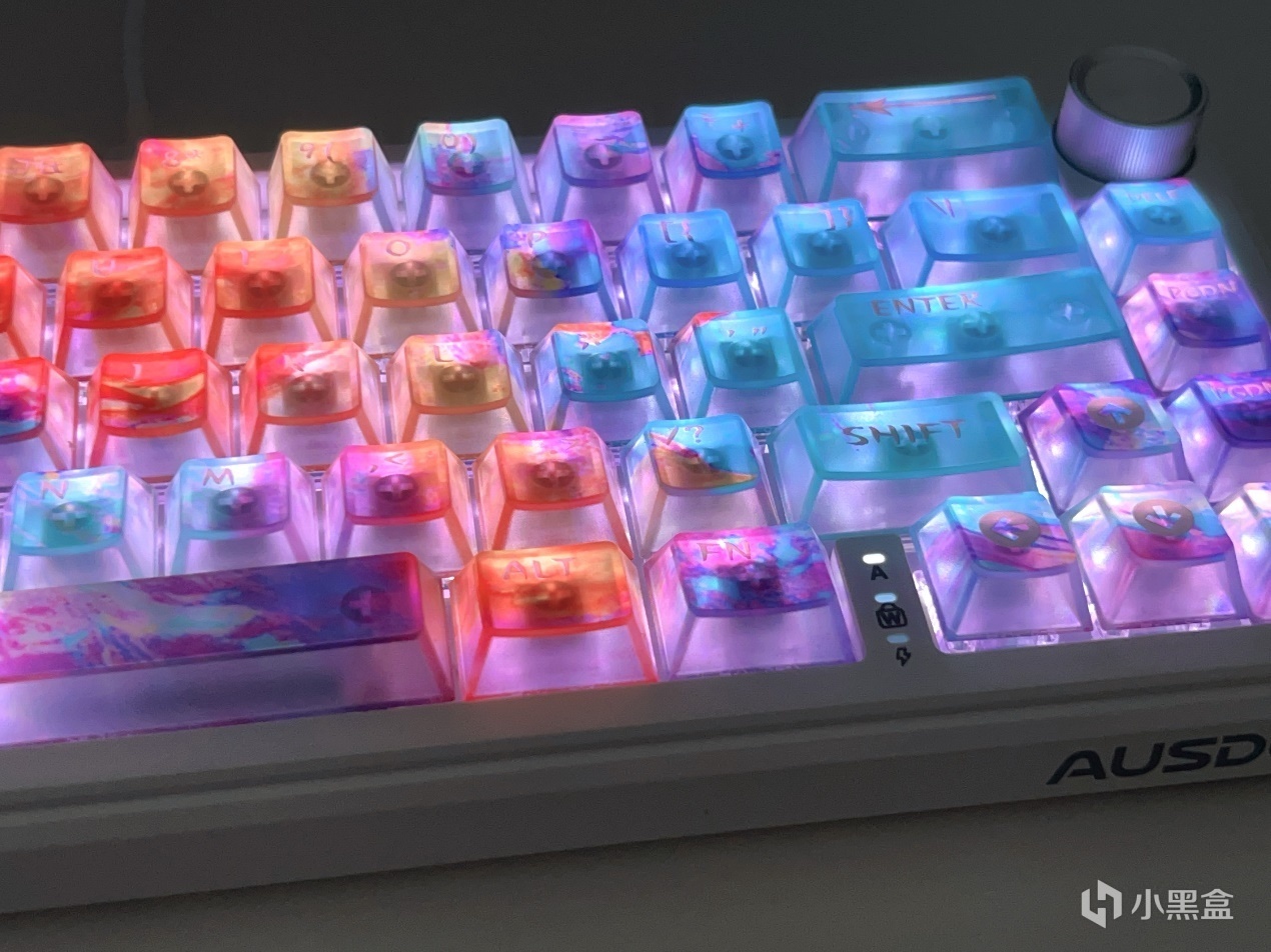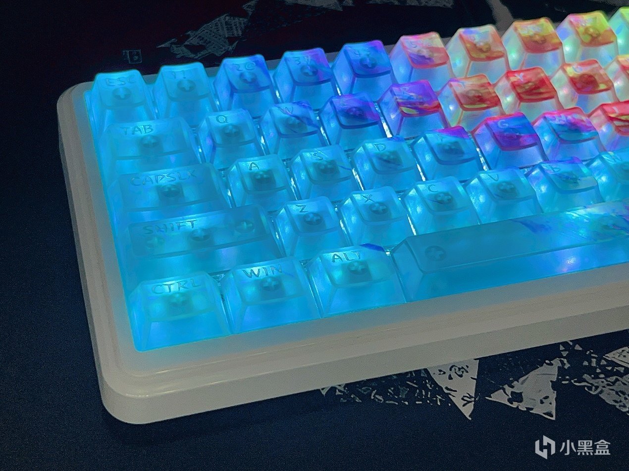說實話剛裝完的時候感覺太像深海的配色了,而且裝在我白色燈效的鍵盤上真是帽機合一、鍵魂昇華……整體特別透