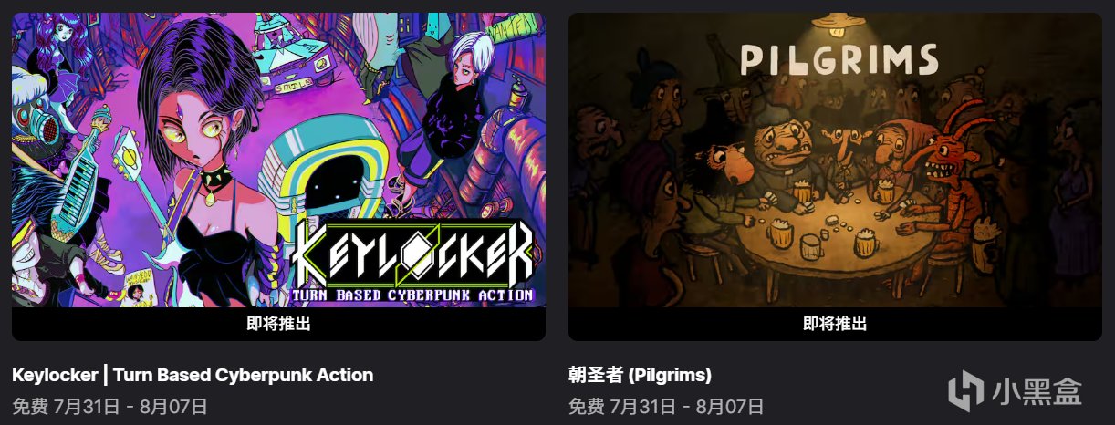 下一周赠送的免费游戏为《钥匙柜:回合制赛博朋克动作》和《朝圣者》,领取时间7月31日~8月07日