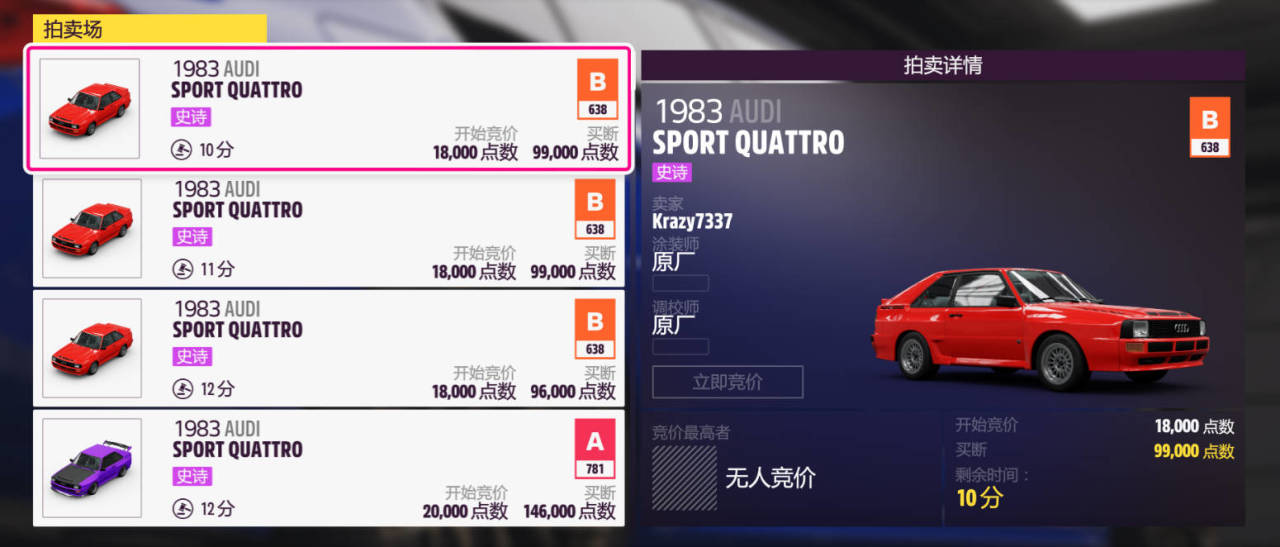 奖励车辆为:1983款AUDI SPORT QUATTRO