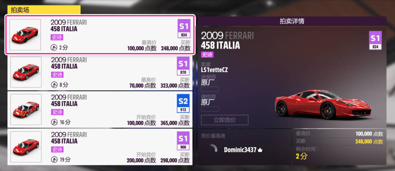 奖励车辆为:2009款FERRARI 458 ITALIA