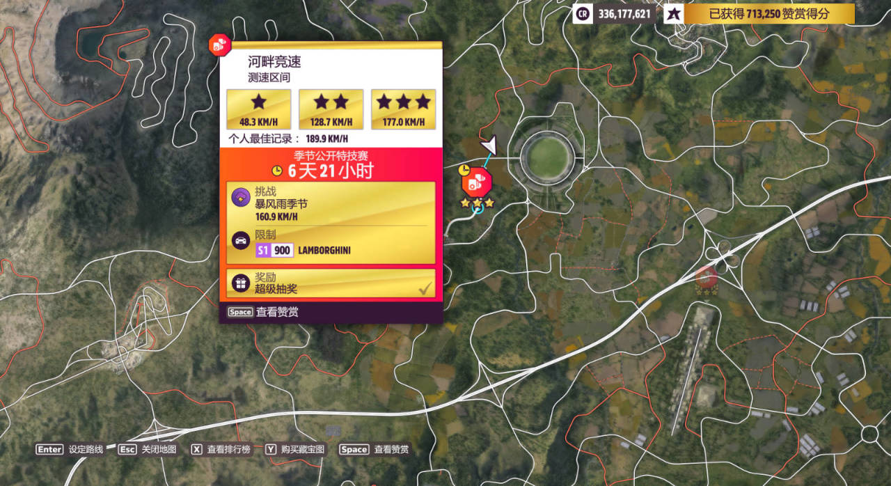 测速区间:河畔竞速,完成奖励为超级抽奖(限制S1(900)-LAMBORGHINI)