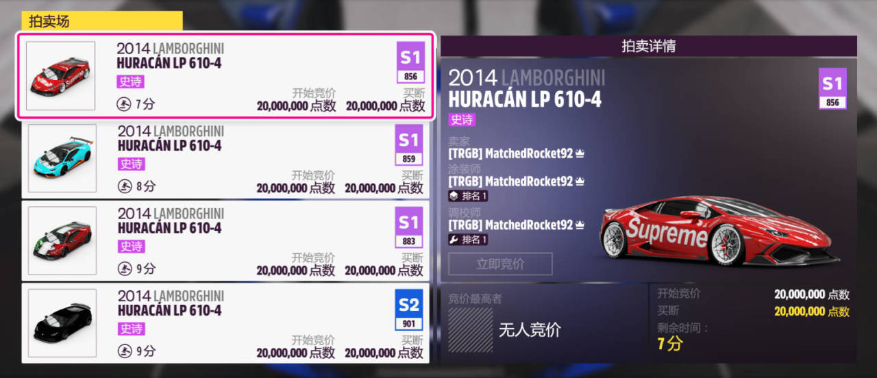 推荐车辆:2014款LAMBORGHINI HURACAN LP 610-4(车展,收藏品奖励车,建议从上方进区间)