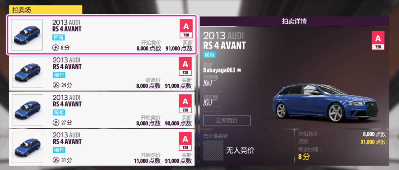 奖励车辆为:2013款AUDI RS4 AVANT
