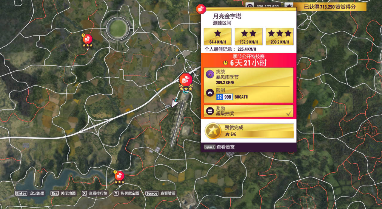 测速区间:月亮金字塔,完成奖励为超级抽奖。(限制S2(998)-BUGATTI)
