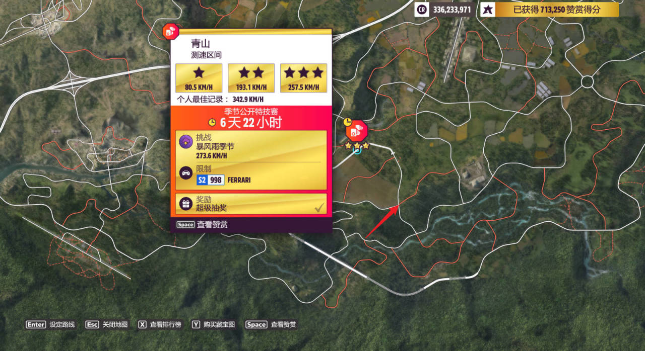 测速区间:青山,完成奖励为超级抽奖(限制S2(998)-FERRARI)