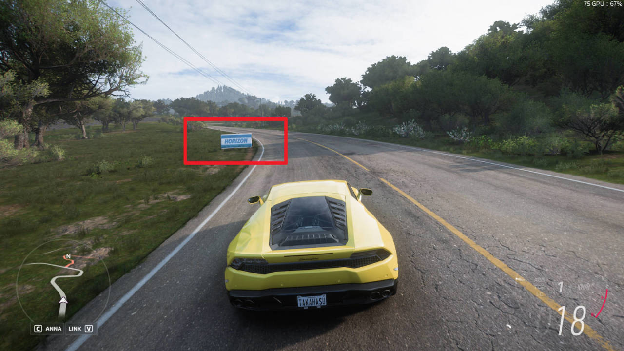在体育场西北面的道路破坏10块地平线欧洲奖励广告牌 ,位置如图(在地平线2嘉年华场地周边的公路上,大家仔细找找),完成奖励为2014款LAMBORGHINI HURACAN LP 610-4