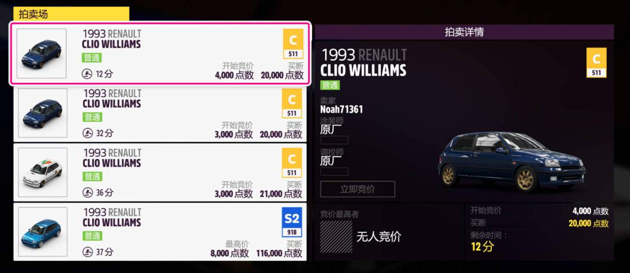 奖励车辆为:1993款RENAULT CLIO WILLIAMS