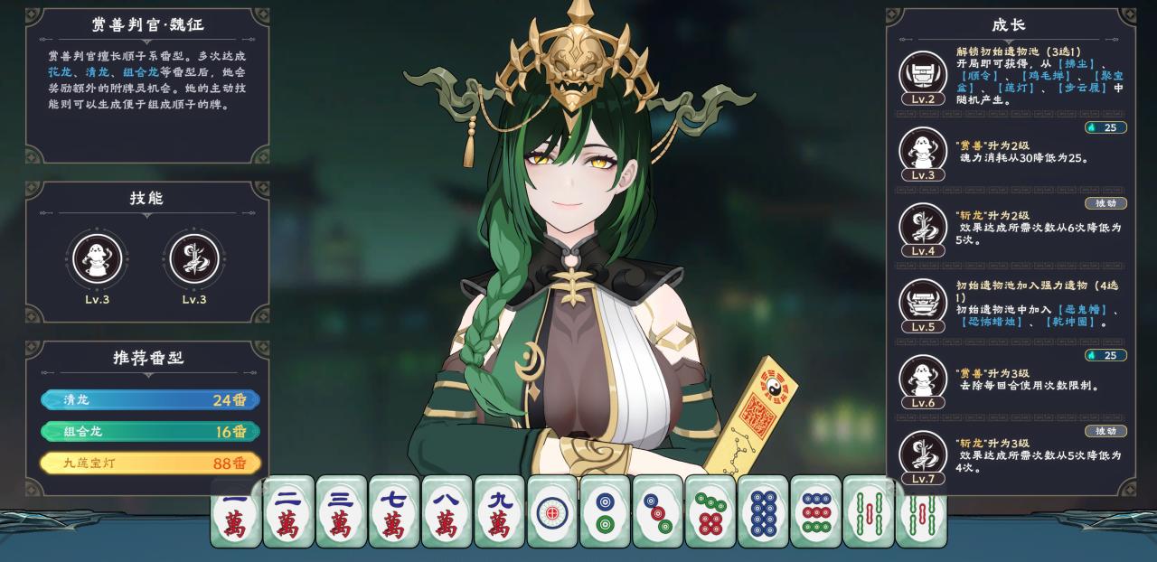 基础的角色有着十分明确的牌型倾向,约等于一局“定向肉鸽”,而进阶角色则考验国标麻将高手的思维自由度,想胡什么随机应变!