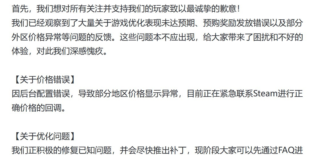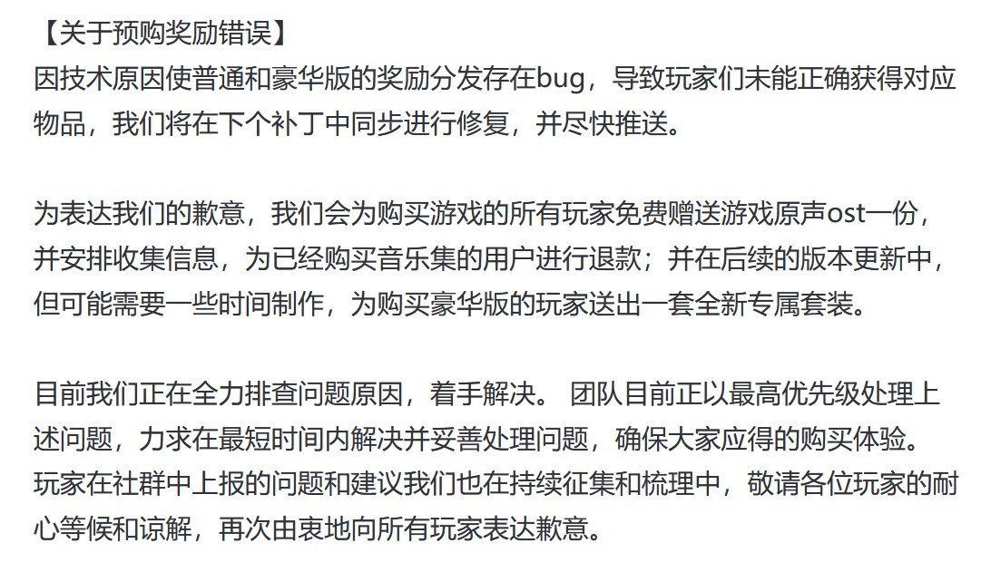 今日,《明末:渊虚之羽》官方发布【发售首日致歉公告】。