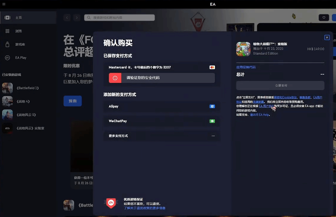 國內知名玩家博主“@22娘最可愛了”近期在社交平臺發佈了一段短視頻,展示了 EA APP 中出現的一個名爲《植物大戰殭屍:重植版》(Replanted)的新條目,顯示: