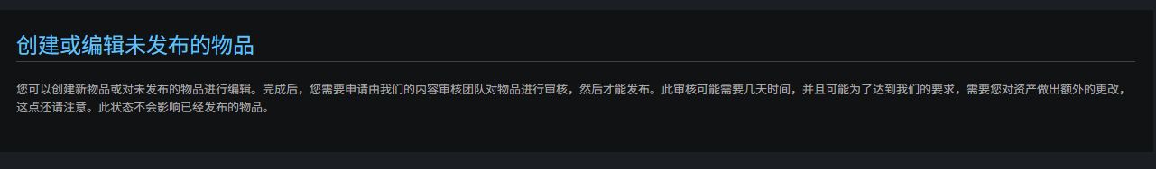 而且,它居然沒有任何第二個按鈕讓我切換回“已發佈”狀態,且由於我沒有新增任何物品,也無法點擊送達Steam審覈