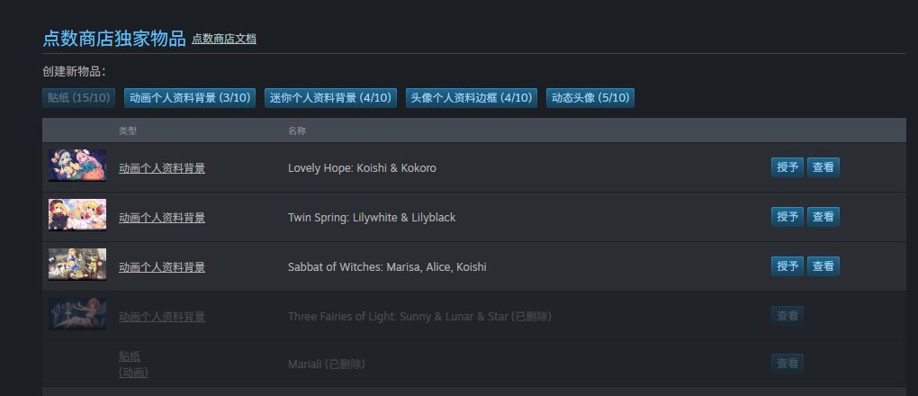 然後也確實能新建和添加新的點數商店物品了(因爲Steam更新後臺甚至還限制了貼紙的最大數量,我的遊戲的貼紙數量超額了5個)