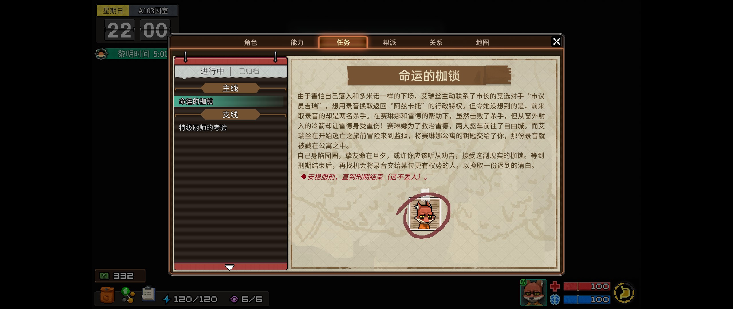 而作为体质更加优秀的黑豹,我们也能完成许多在狐狸线中难以完成的部分,比如初始就拥有派别,当然也会因为身材过于高大而不方便偷东西(可恶)。