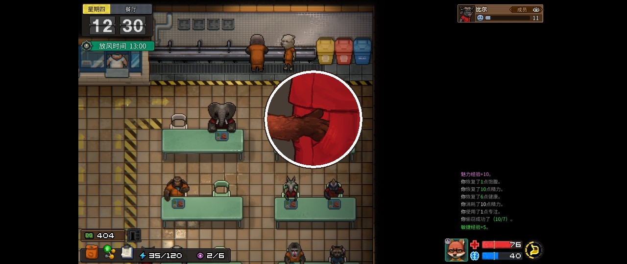 监狱里的每一位角色都有属于自己的天赋技能,我们可以通过与其搞好关系来学习他们的技能,往往一些技能会为我们的监狱生活带来奇效(点名某位大型猫科动物)。