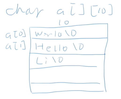 C语言中,二维数组在内存中存储,遵循 按行主顺序 放入。