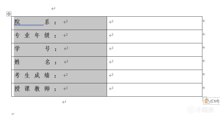然后我们选择右侧表格,按CTRL+E,让文字水平居中就可以啦