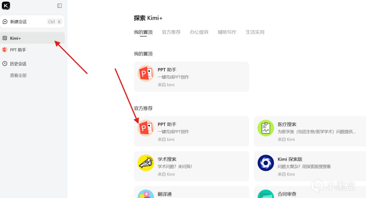 然后我们用浏览器直接搜索kimi智能助手,选择kimi+,选择PPT助手