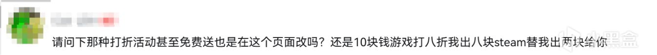 還有玩家在其他平臺問了我這樣的問題:請問下那種打折活動甚至免費送也是在這個頁面改嗎?還是10塊錢遊戲打八折我出八塊steam替我出兩塊給你