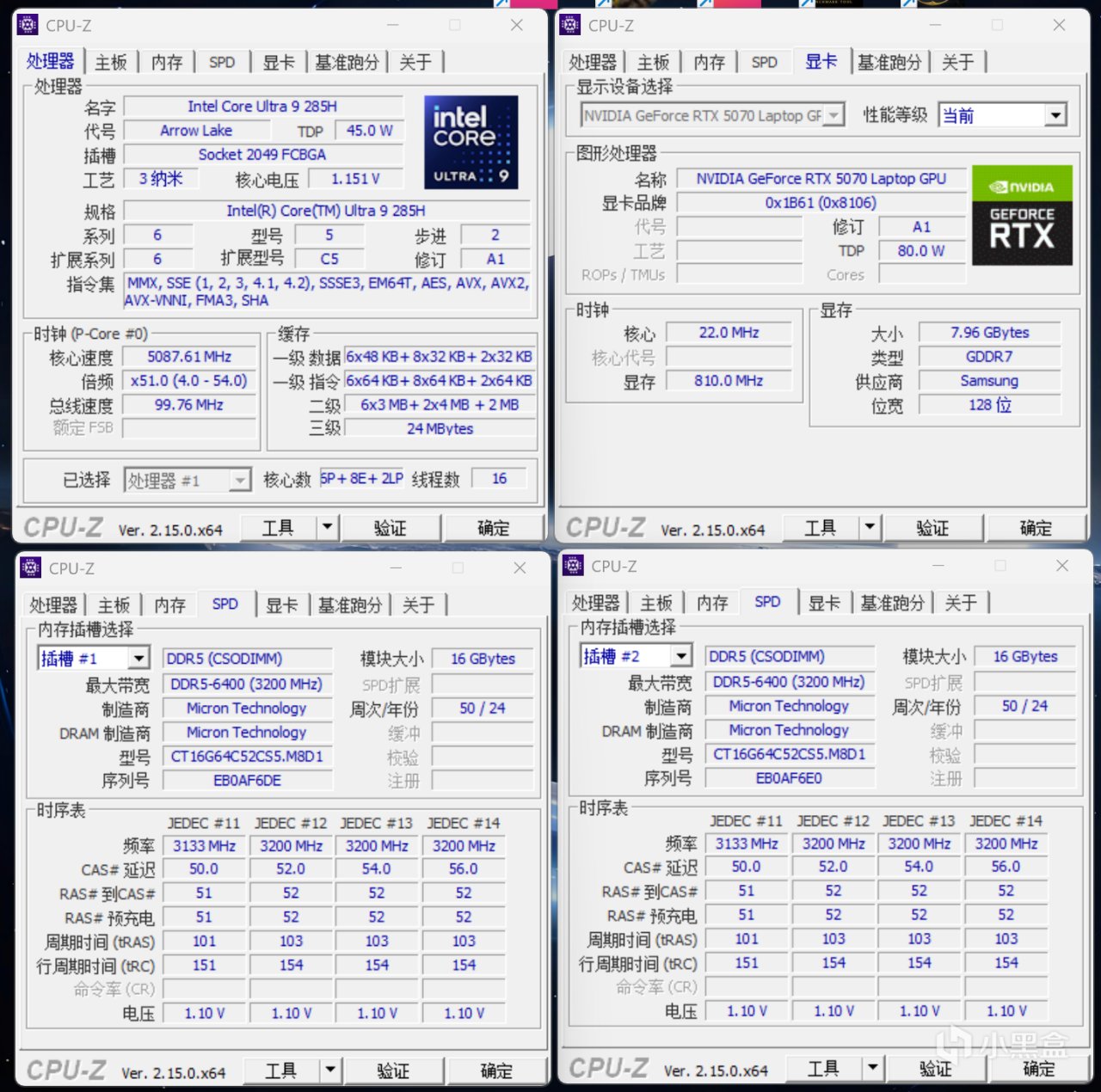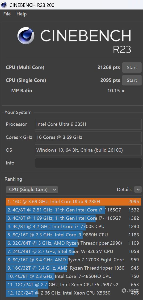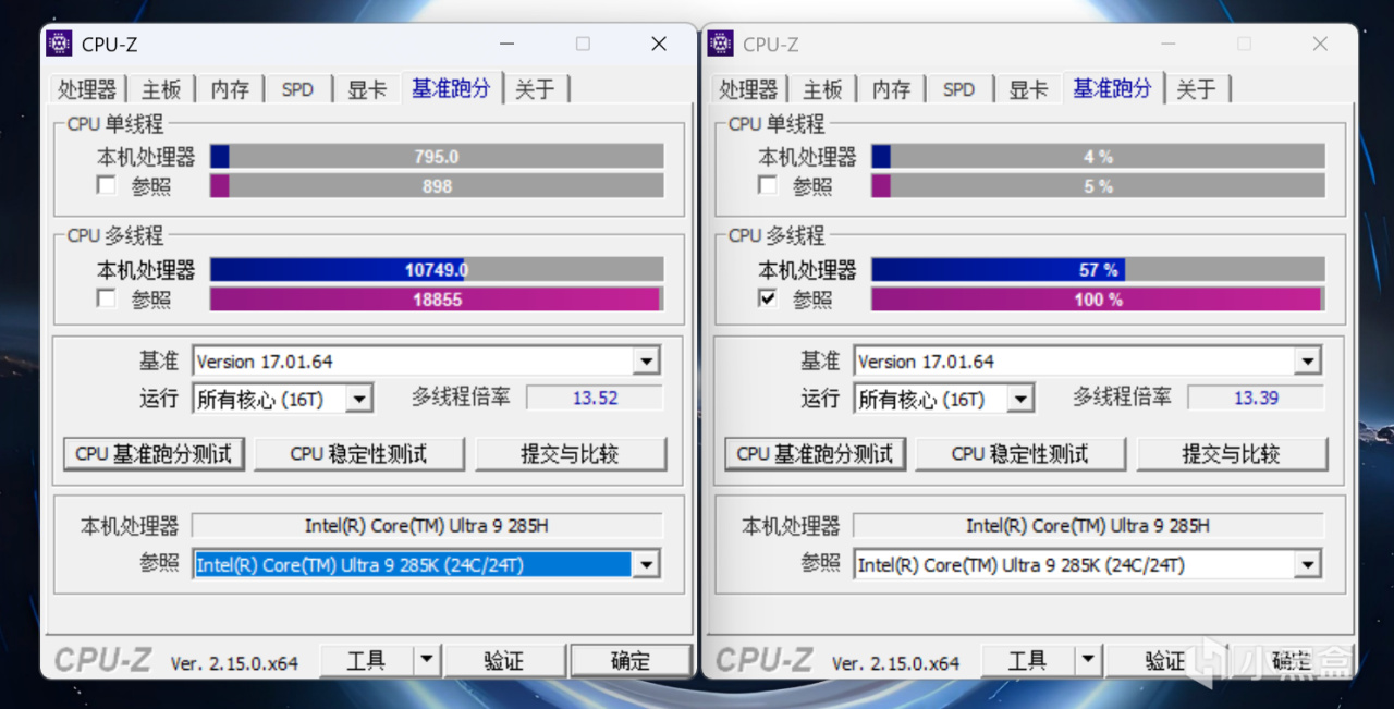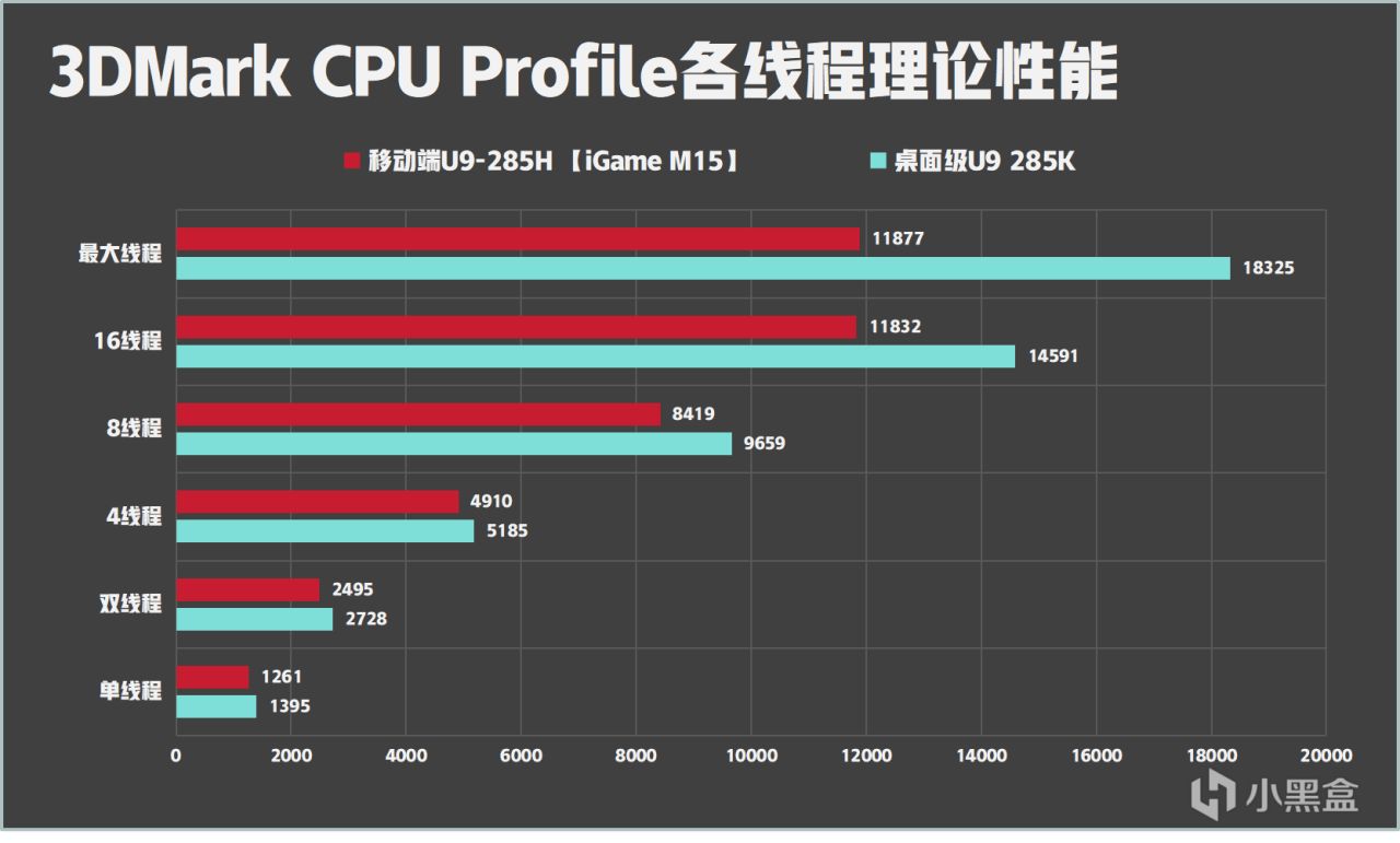 CPU Profile项目中单线程表现十分理想,移动端U9 285H十分接近桌面端285K的成绩。