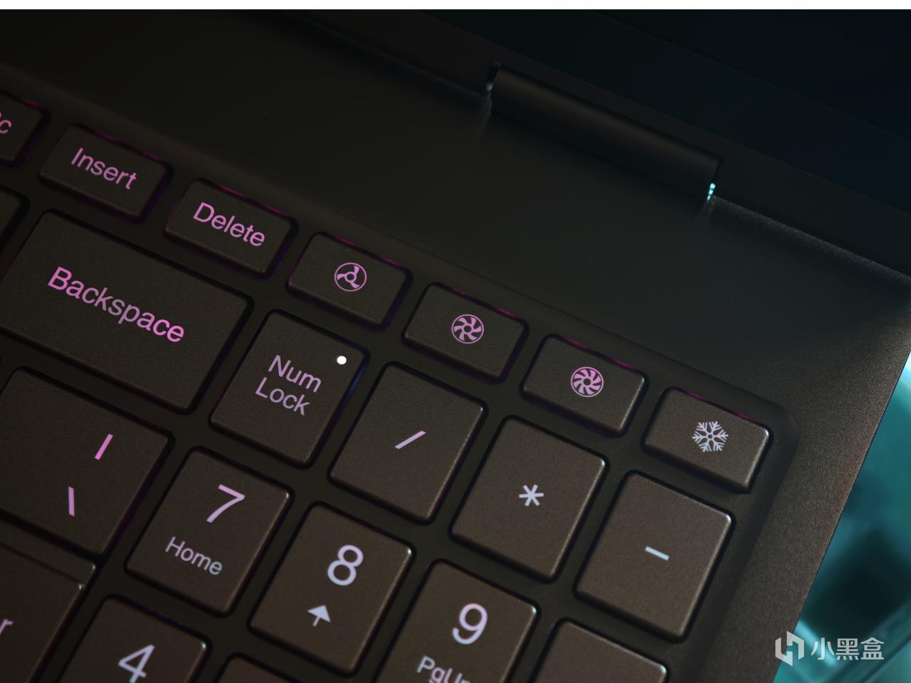 键盘部分小创新在于右上角集成了四颗风扇控制按键,转速从左往右转速逐步提高。