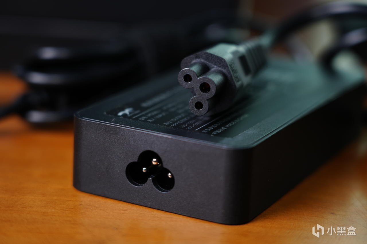 供电线与适配器连接依旧是梅花口,七彩虹笔记本传统了属于是。