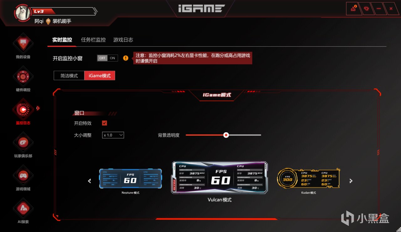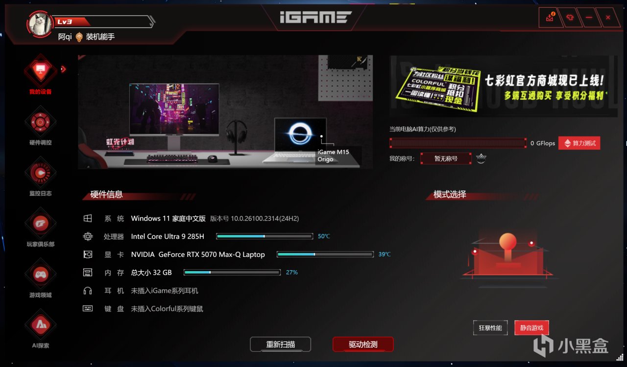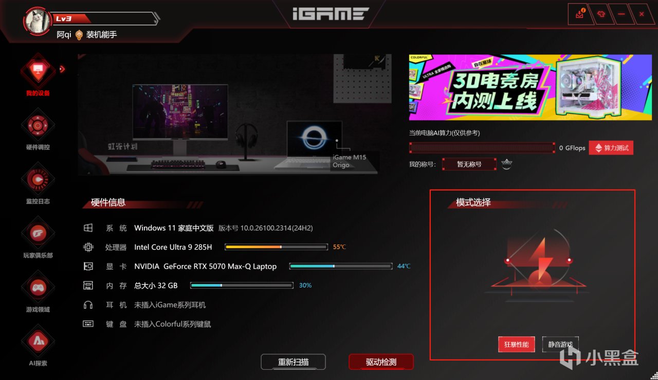 是的,M15的控制中心不再是公版而是用上了自有的iGame Center生态,不错不错。