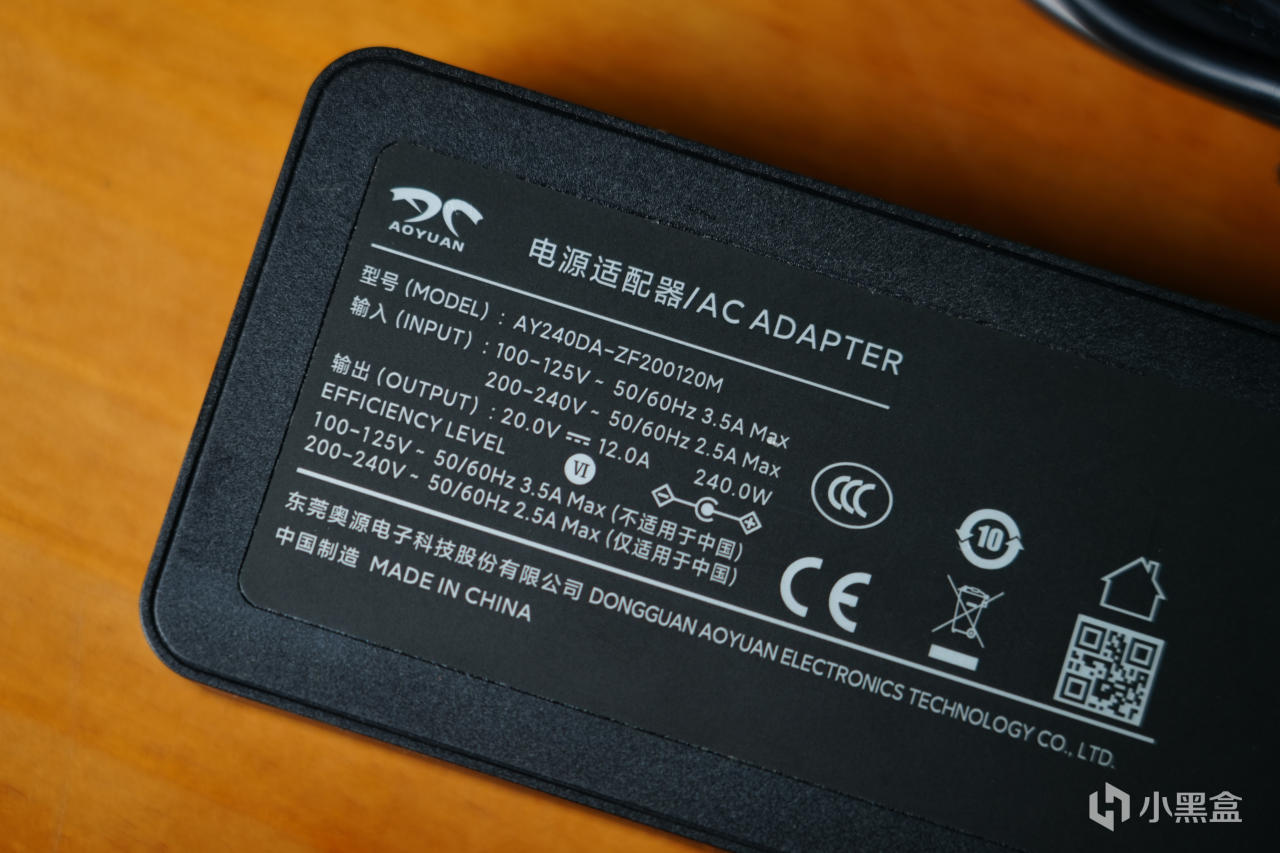 适配器的制造商为广东东莞的奥源电子,功率方面适配器输出给到了240W。