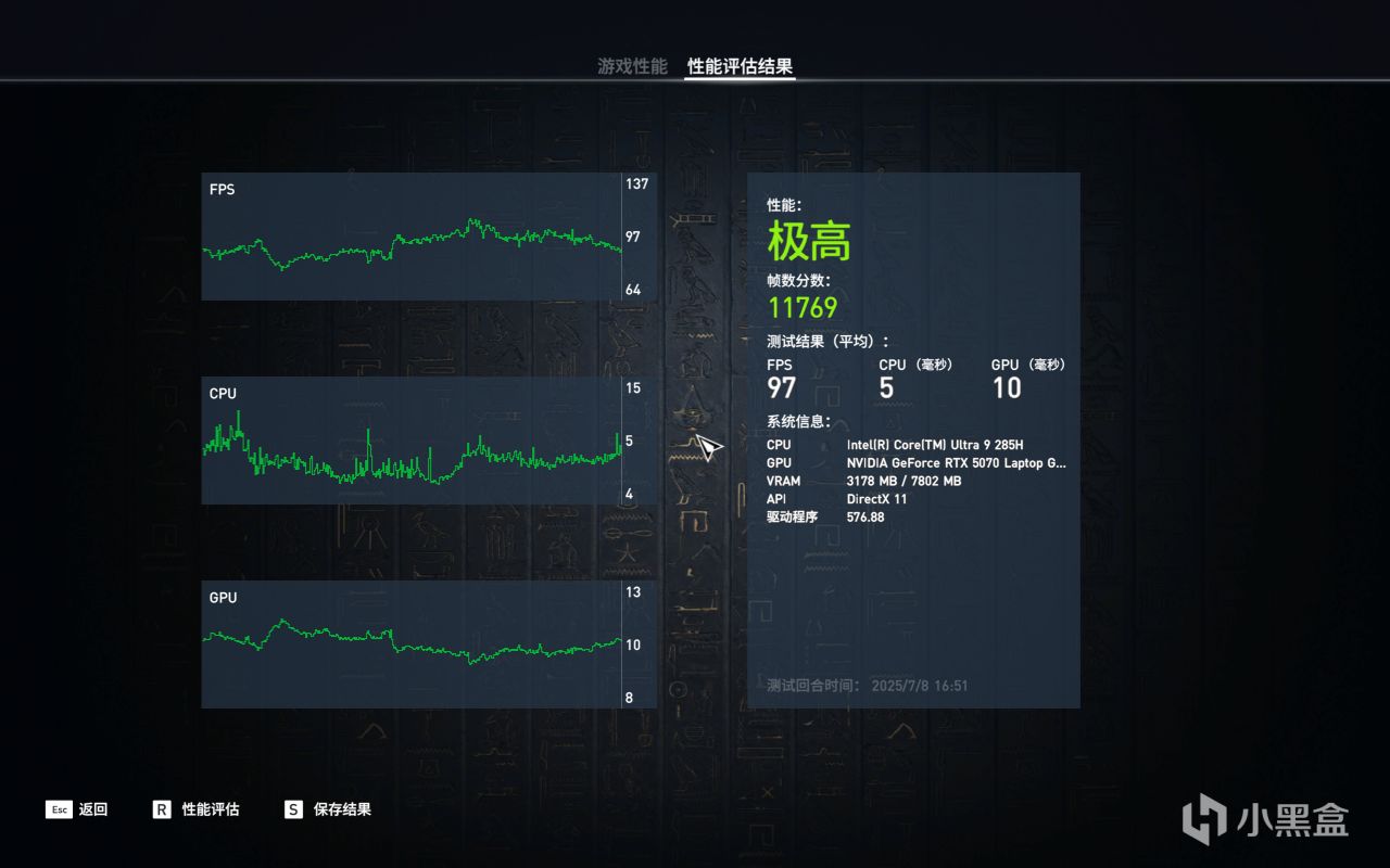 移动端RTX 5070的表现也在预料之中,4代直接拉满选最高画质就行,至于5代的画质选择推荐: