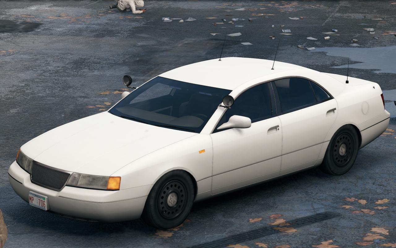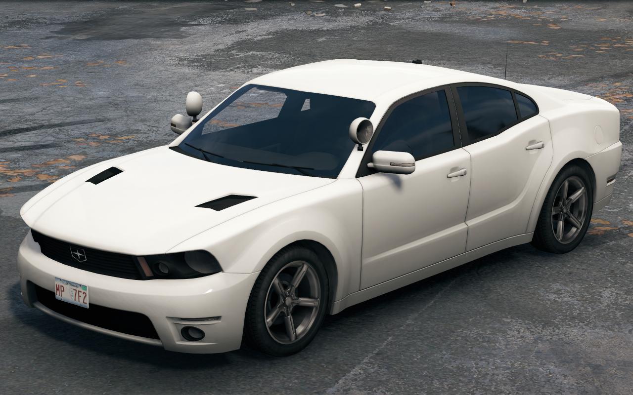 便衣警車從外觀上看和同型號的民用車輛沒有太大區別,車身沒有任何警察圖案或字樣,使用內置警燈,你只能從A柱上的探照燈看出不同。更加致命的是,便衣警車並不會在地圖上顯示圖標,很可能你已經到了很近距離,纔會發現它的存在。便衣警車的常用顏色爲白色、灰色、深藍色、酒紅色。