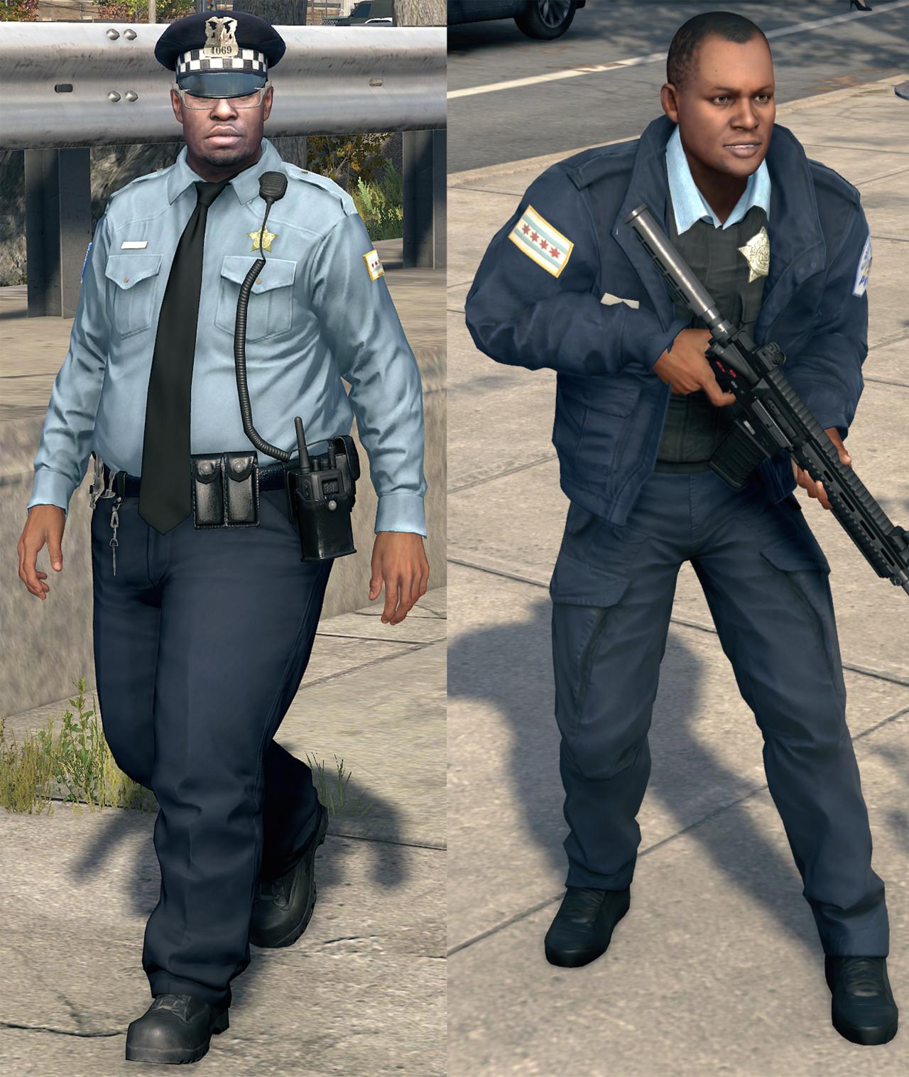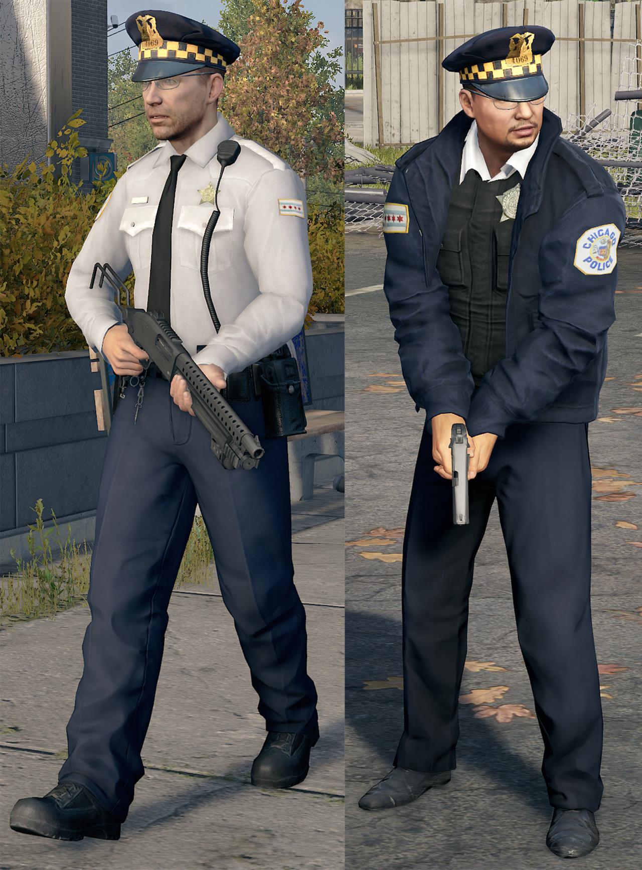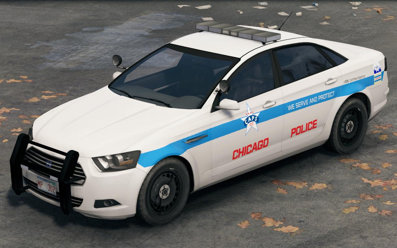 這些巡邏車保留了原版的白底藍條,同時對警車車身的圖案增加了芝加哥的“五星四行”市旗和CAPS徽標,使其更像現實塗裝(CAPS爲Chicago Alternative Policing Strategy的縮寫,意爲芝加哥社區警務模式),同時增加了警局的官方標語“我們服務並保護您”,在汽車尾部爲了貼合世界觀額外增加了一個“ctOS認證機構”的貼紙。