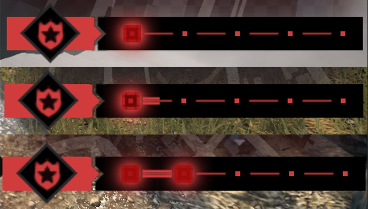 在觸發通緝後在地圖下方顯示,以實心的紅色正方形爲點,點和點之間直線相連,一個點代表着一級通緝等級。造成警員殉職或載具癱瘓會增加你的威脅度,此時點和點之間的直線會開始以進度條的形式上漲,上漲到一定程度後將會連接至第二個點,也就意味着你的等級等級會上升一個等級。