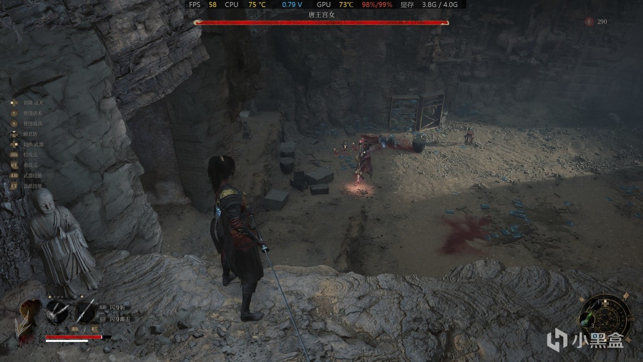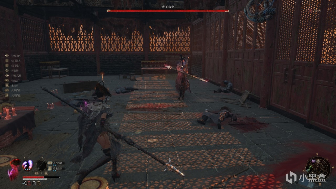这个唐王宫女,她刚开始的时候是在我们下方,我们花个一分钟时间等她过来,然后一个冲刺加轻功,直接出处决,一刀下去半血就没了,然后一直追击打就行。