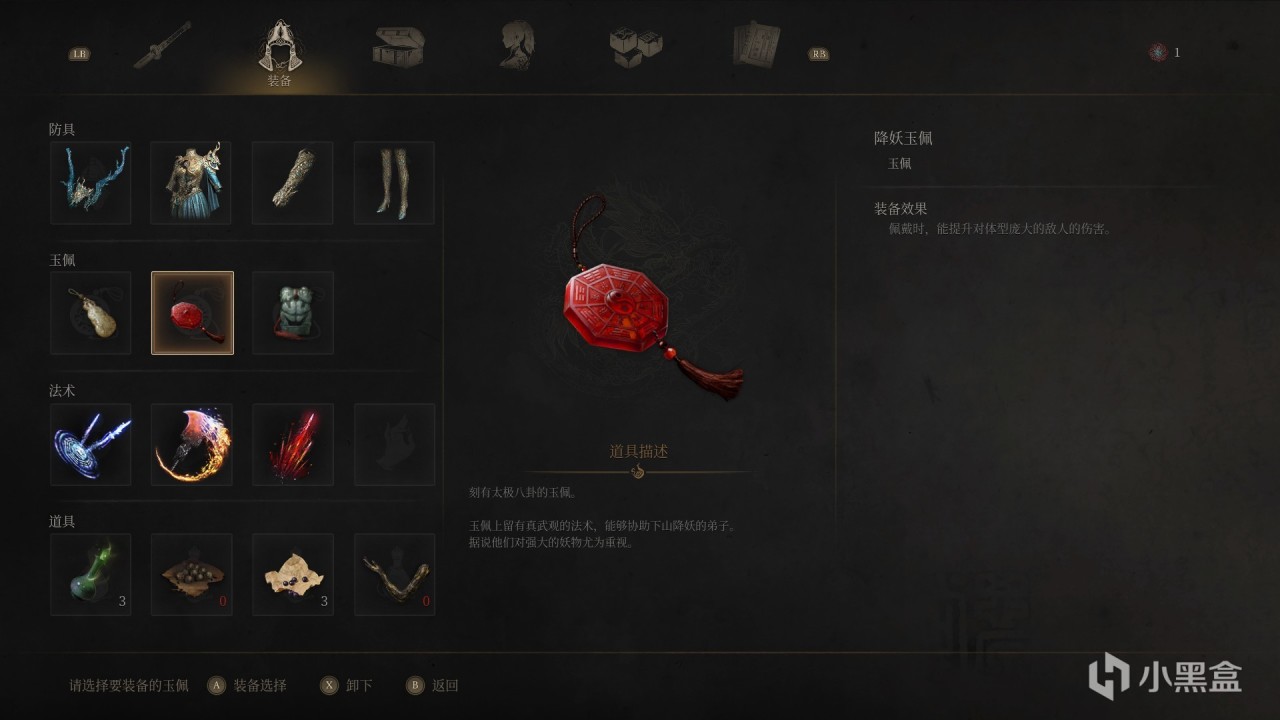 我用的还是长枪,因为确实太爽了!这个BOSS不难,但是得发现一个好玩的事情,待会跟大家说,打之前我们要装备上降妖玉佩——陆红柳掉落的!