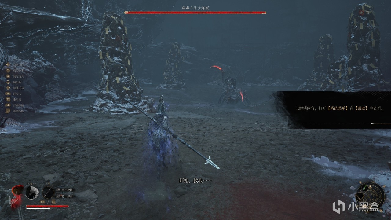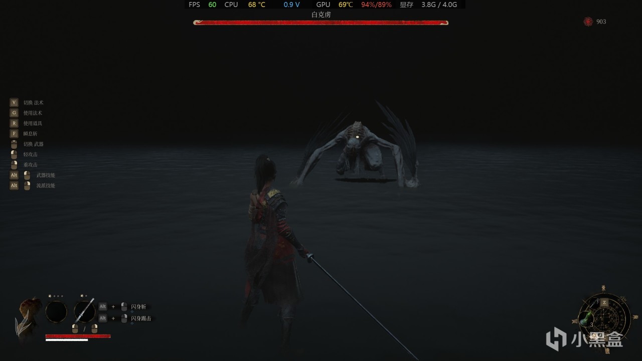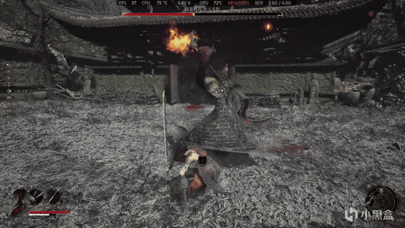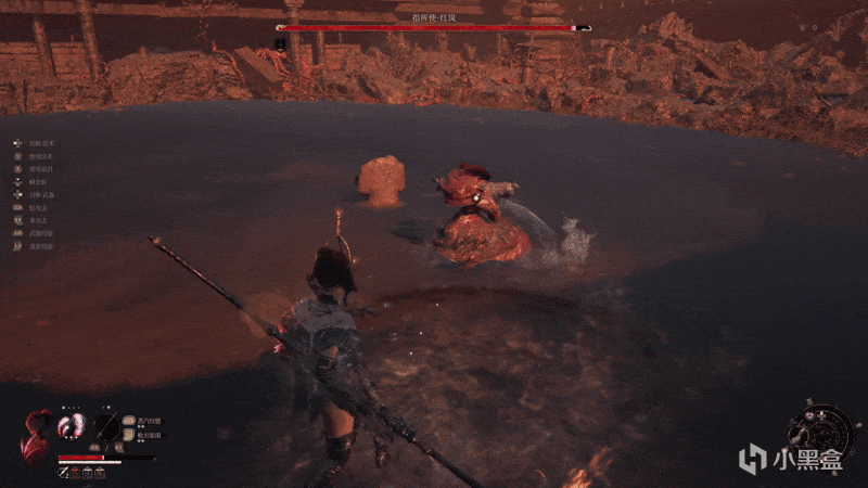 强度倒是不高,就是一开始的时候大家不是很熟悉操作,打起来可能有点蹑手蹑脚的,然后他主要就只有两个出招,一个就是扑击,然后连击两下打你。另外一个就是喷水,注意慢慢积攒须雨用闪身斩磨就行,可能要磨挺久,我磨了5分钟,差一丢丢的时候失误了。