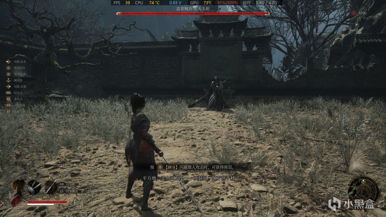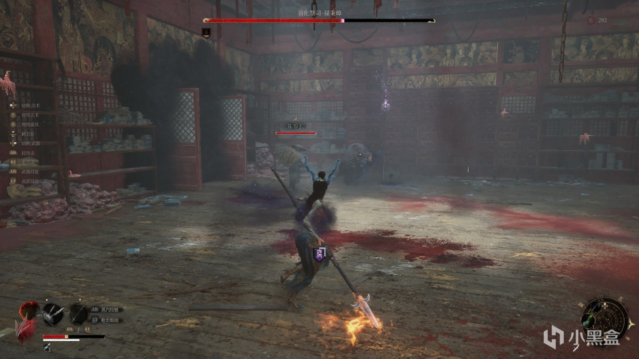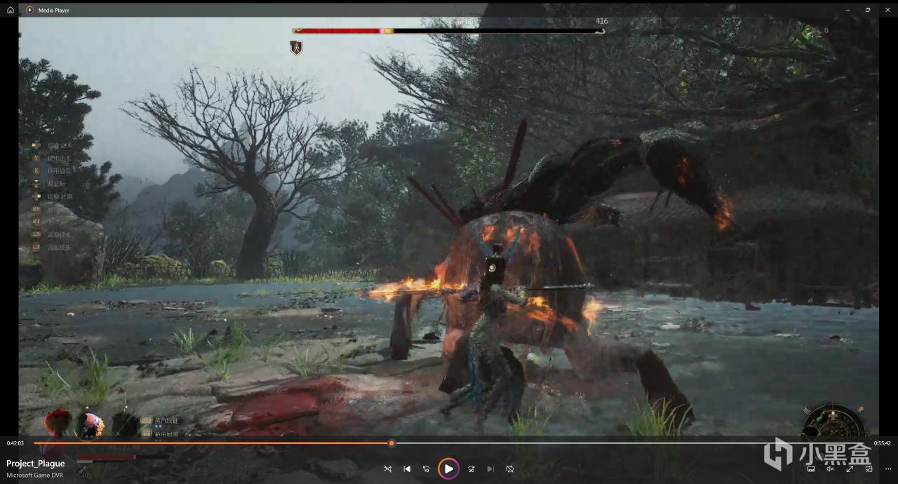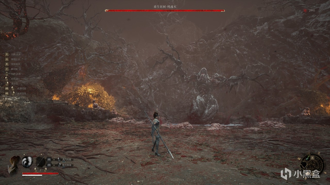 实话说,这个一开始打的时候有点猛,他一个下砸,加上一刀就没了,他会自带腐化异常状态,所以咱们得速战速决!直接不讲武德,利用上面让大家准备的骨哨,直接召唤出年岁长,然后等年岁长拉仇恨以后我们再上前去输出,直接淬一个火,然后捅就完事了,伤害很高。