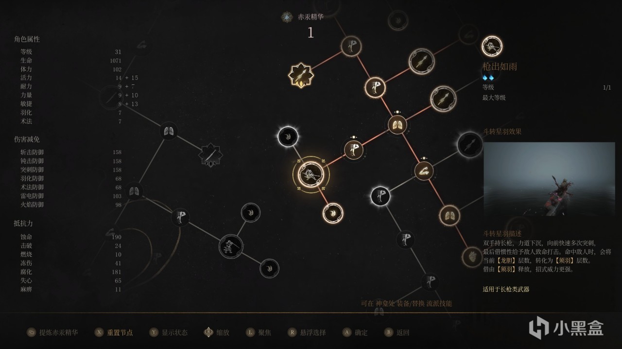 然后是博主使用的武器为在熊猫处用竹笋换的神火长枪,并且把技能树中的流派招式【枪出如雨】点出来,把长枪的技能点一下!