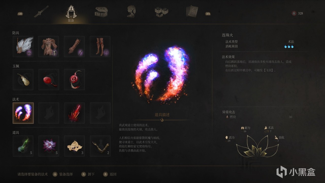 同样,打之前我们要做两件事情,第一件事情是找一件燃烧抗性高一点的套装,然后我们要去拿一个法术,这个法术是一个精英怪掉落的,叫做连珠火。