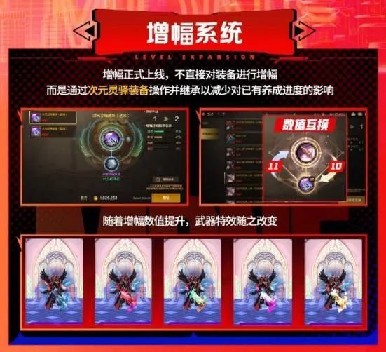 但相比端遊,手遊的增幅系統更加合理且親民。其中最大的變化就是手遊不能直接增幅裝備,增幅的只能是坯子,把坯子鑲嵌在裝備上後就能打上等級。