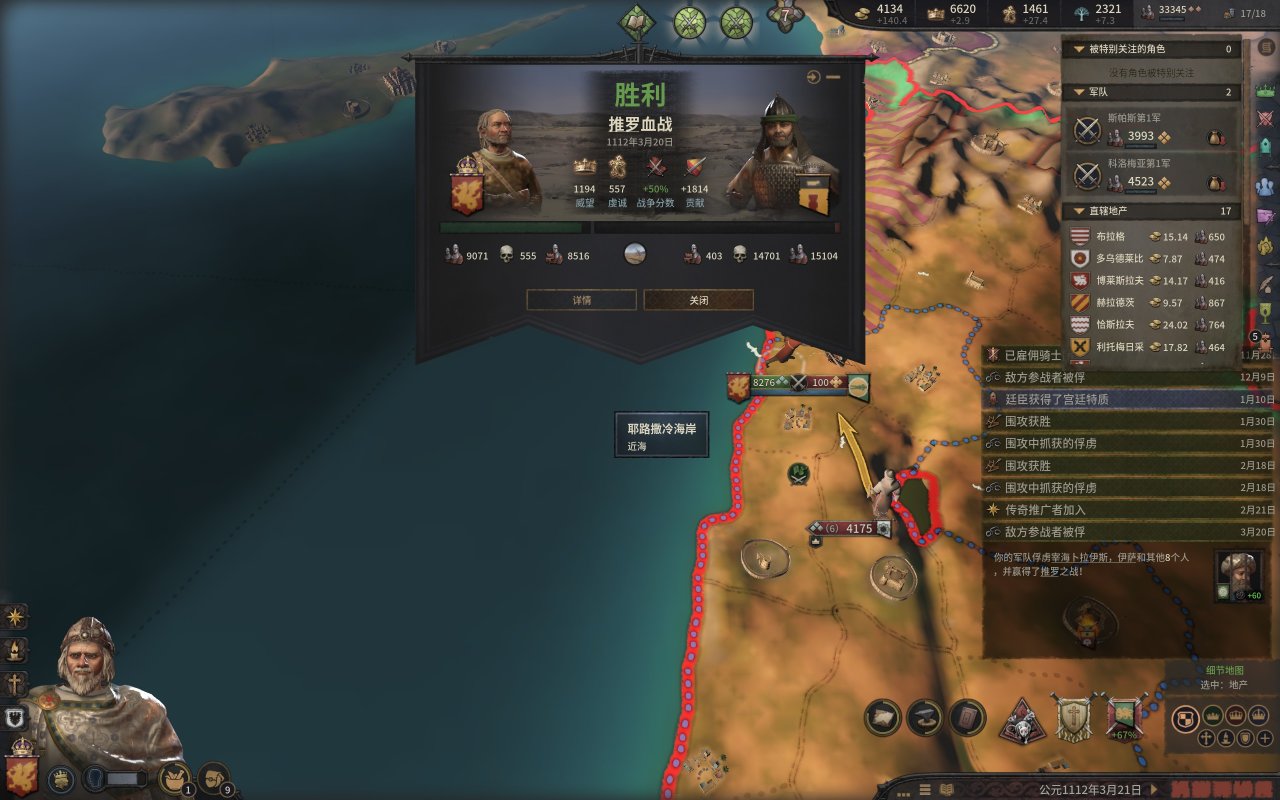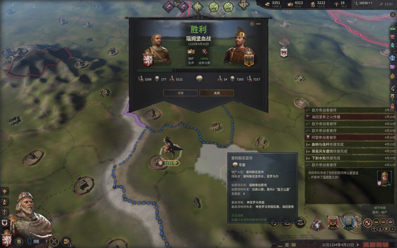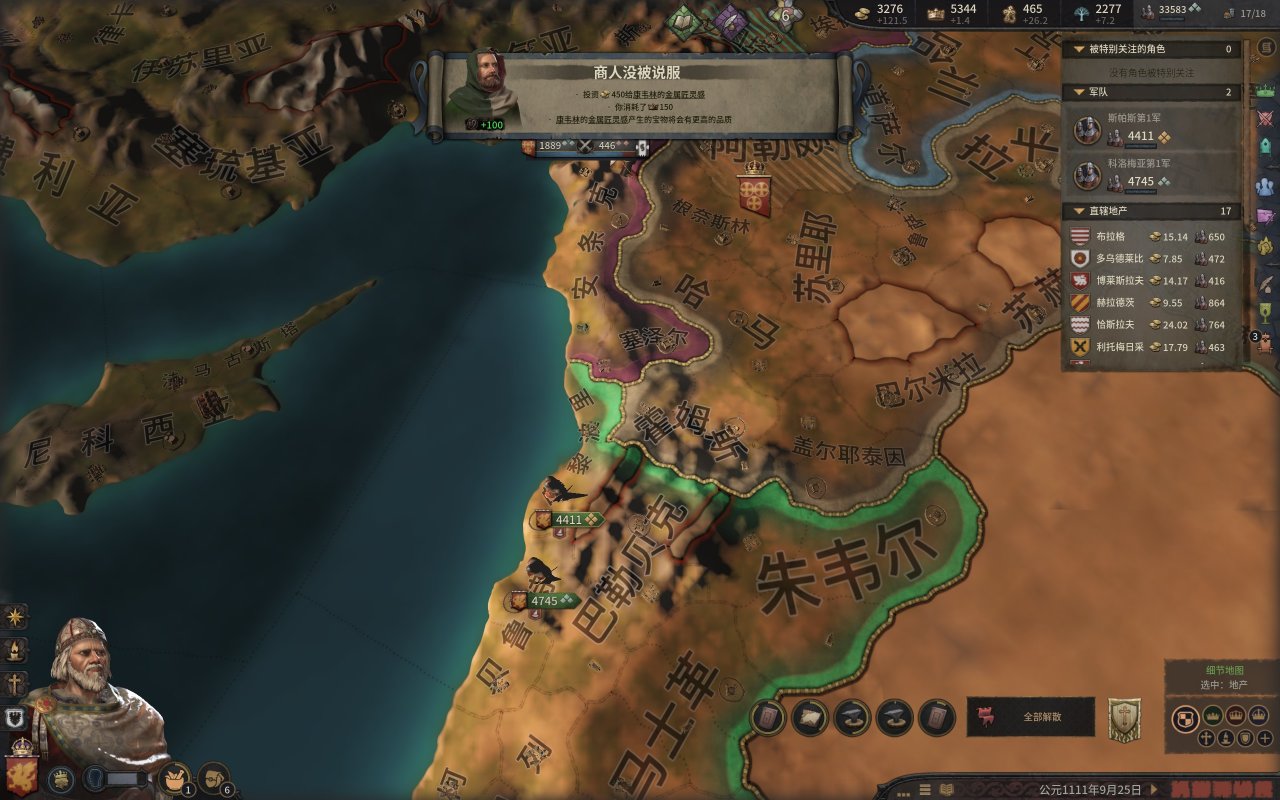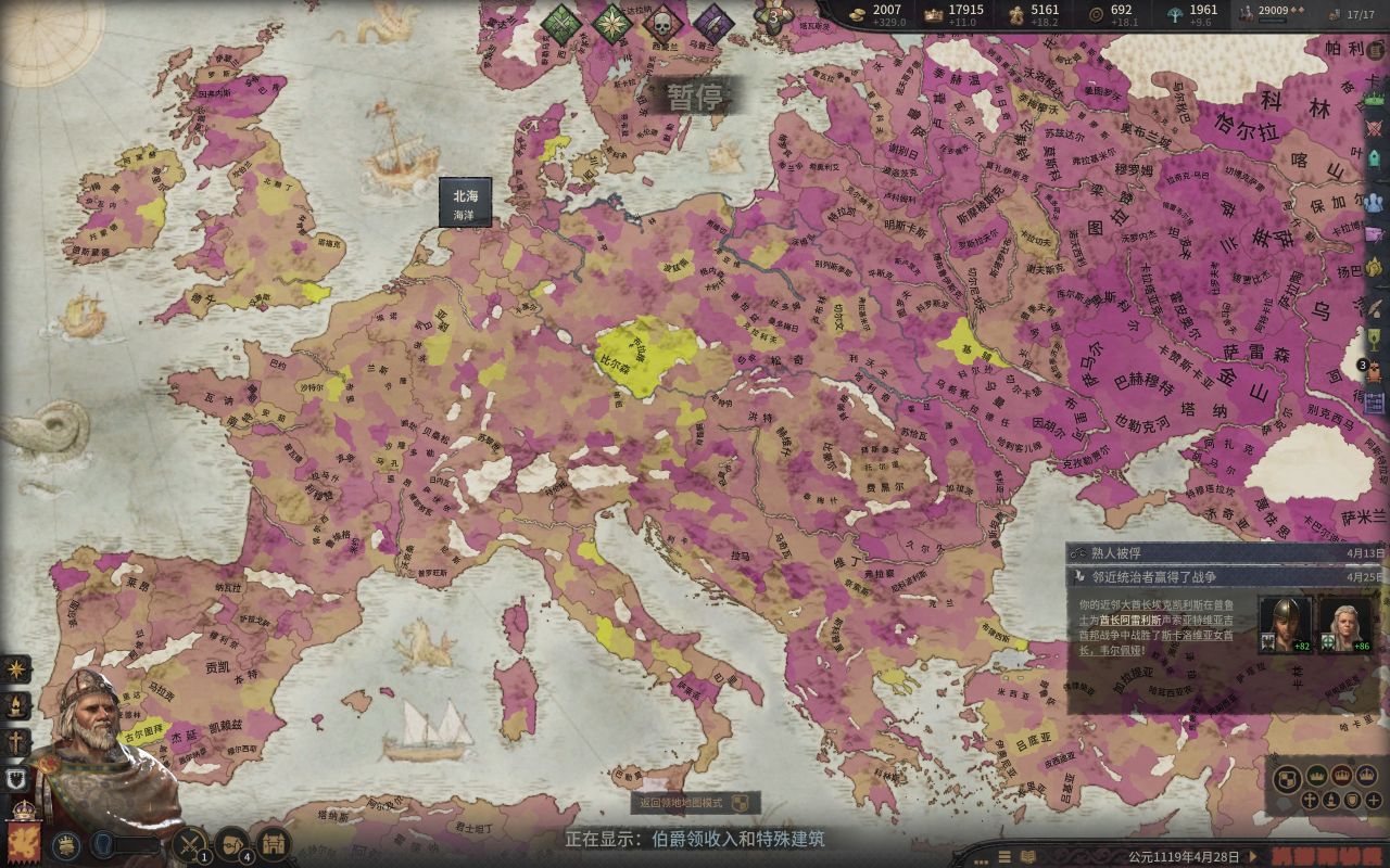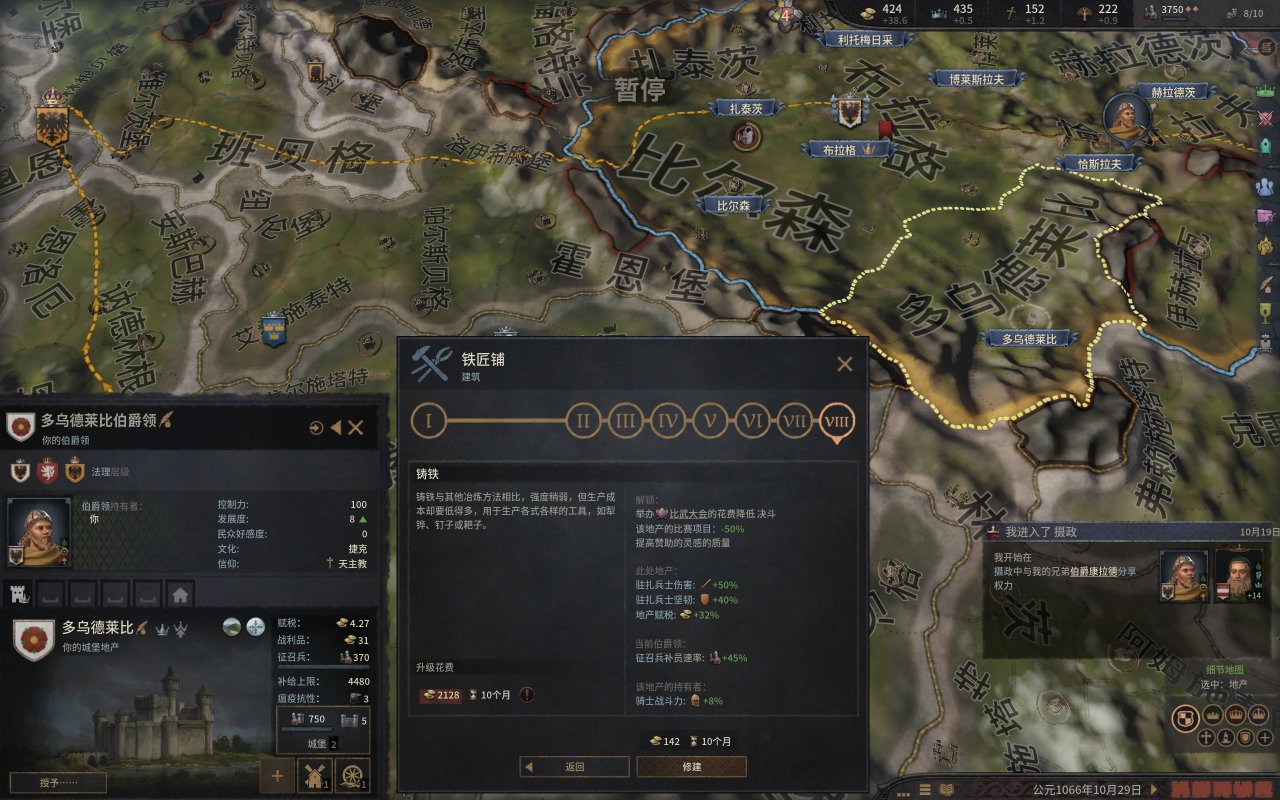 運氣不錯,拿了不少錢+無戰拔掉伯爵領,只不過你既然不反抗的話,那我就先把你拉回來,等以後有其他伯爵領再封一個。
