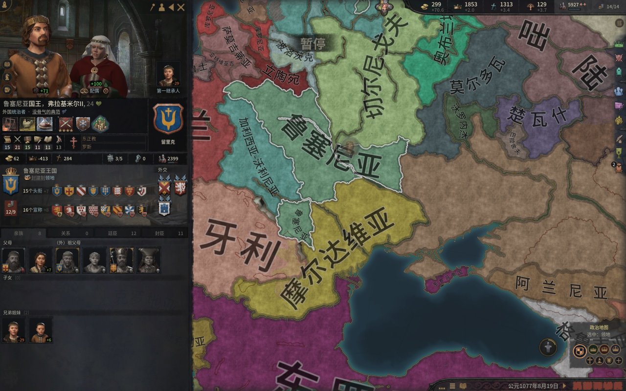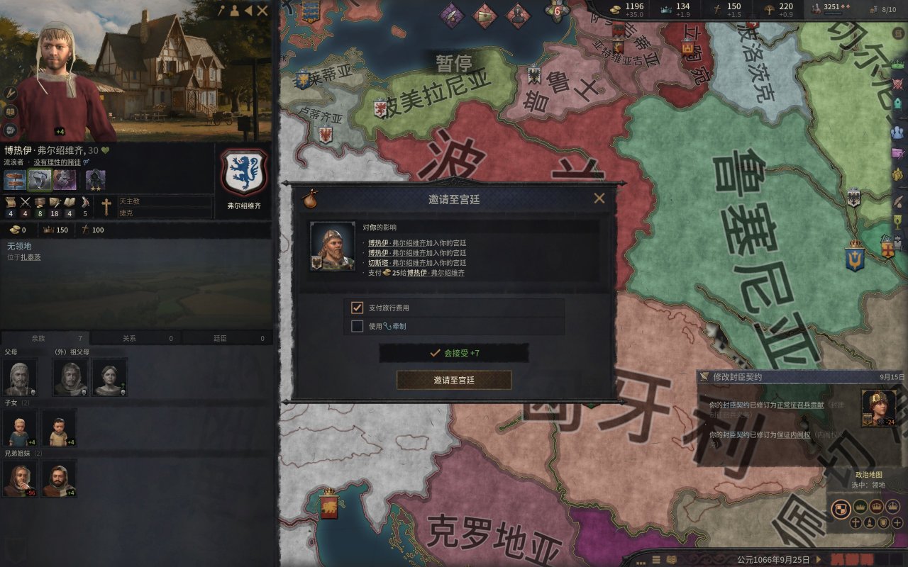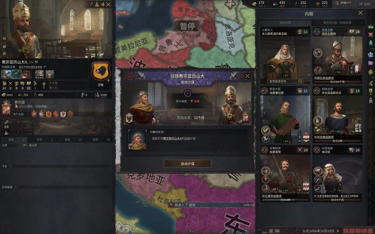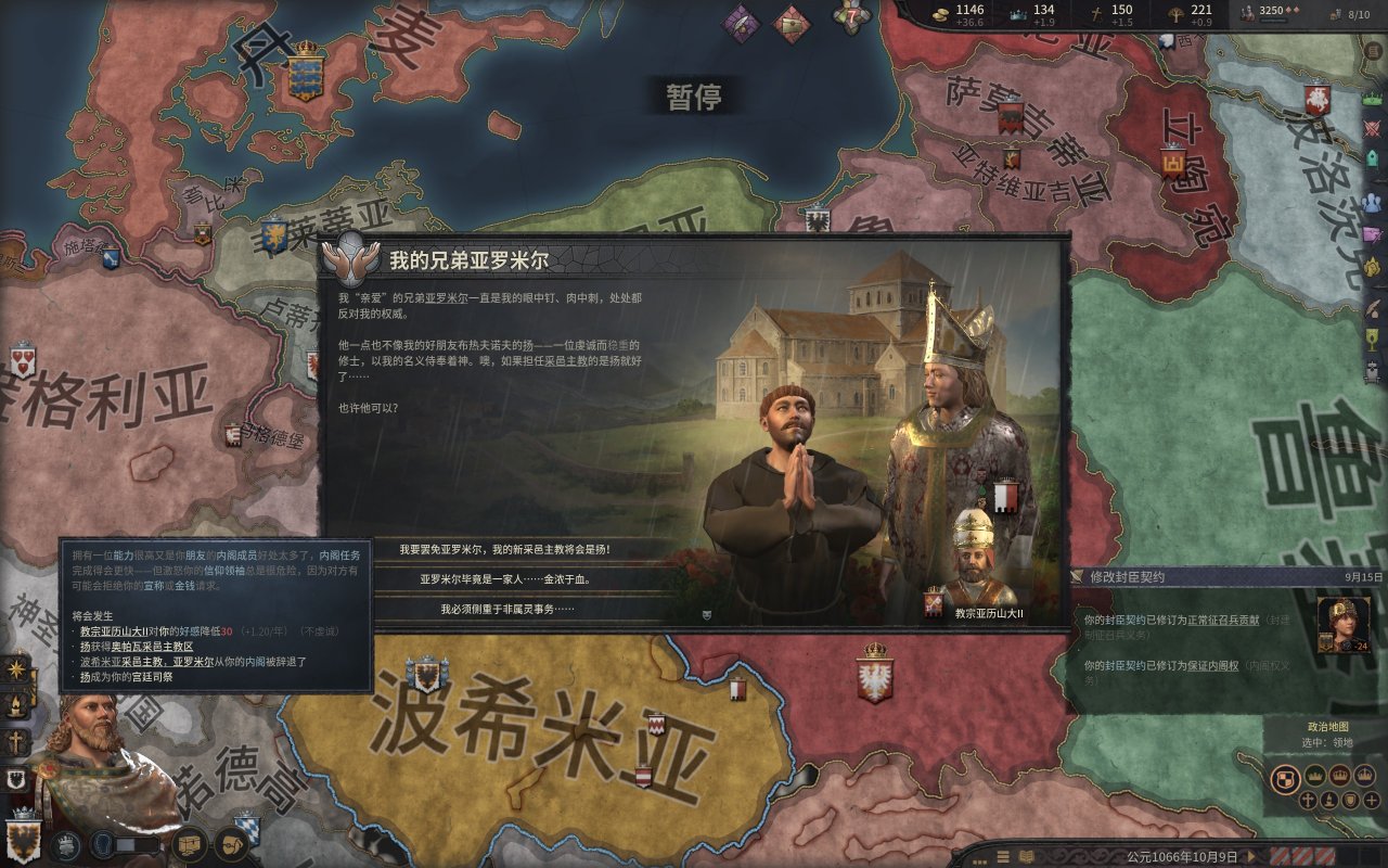把自己不聽話的弟弟換下來,換我的朋友當我的牧首,(亞羅米爾就十點左右學識,楊是30左右,不換纔怪了,而且我還需要一個不錯的牧首去幹另一件大事)。然後與威廉結盟,然後建立我自己的廷臣團體。