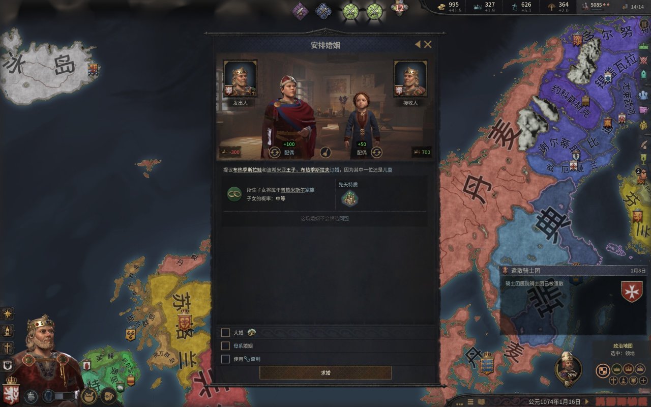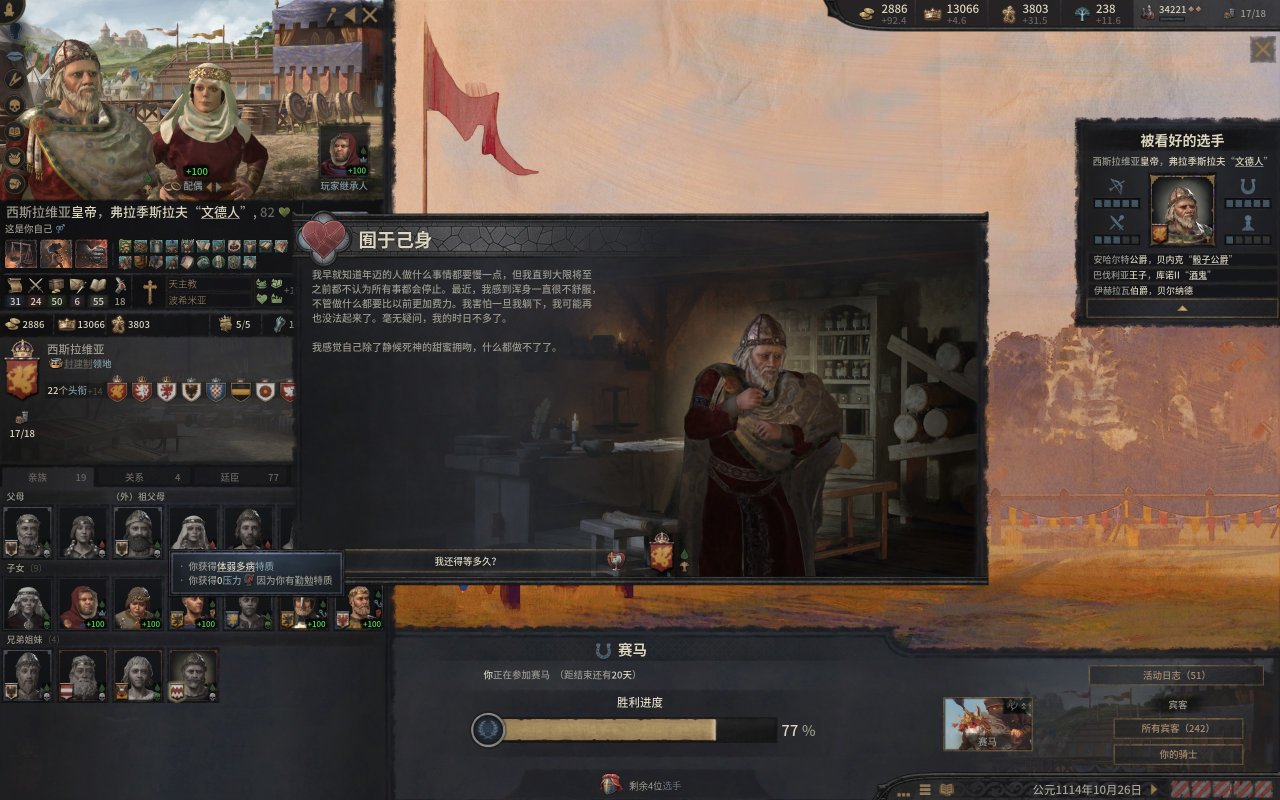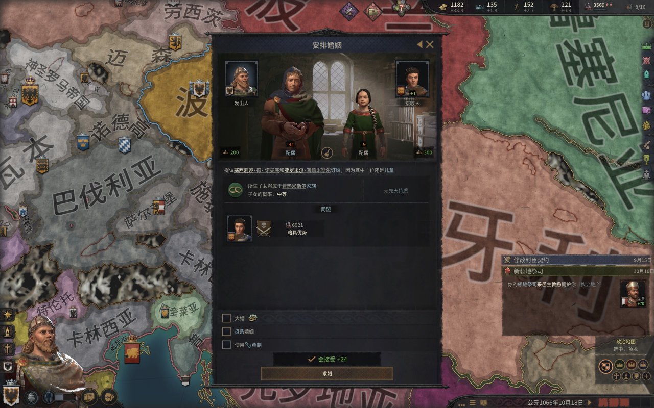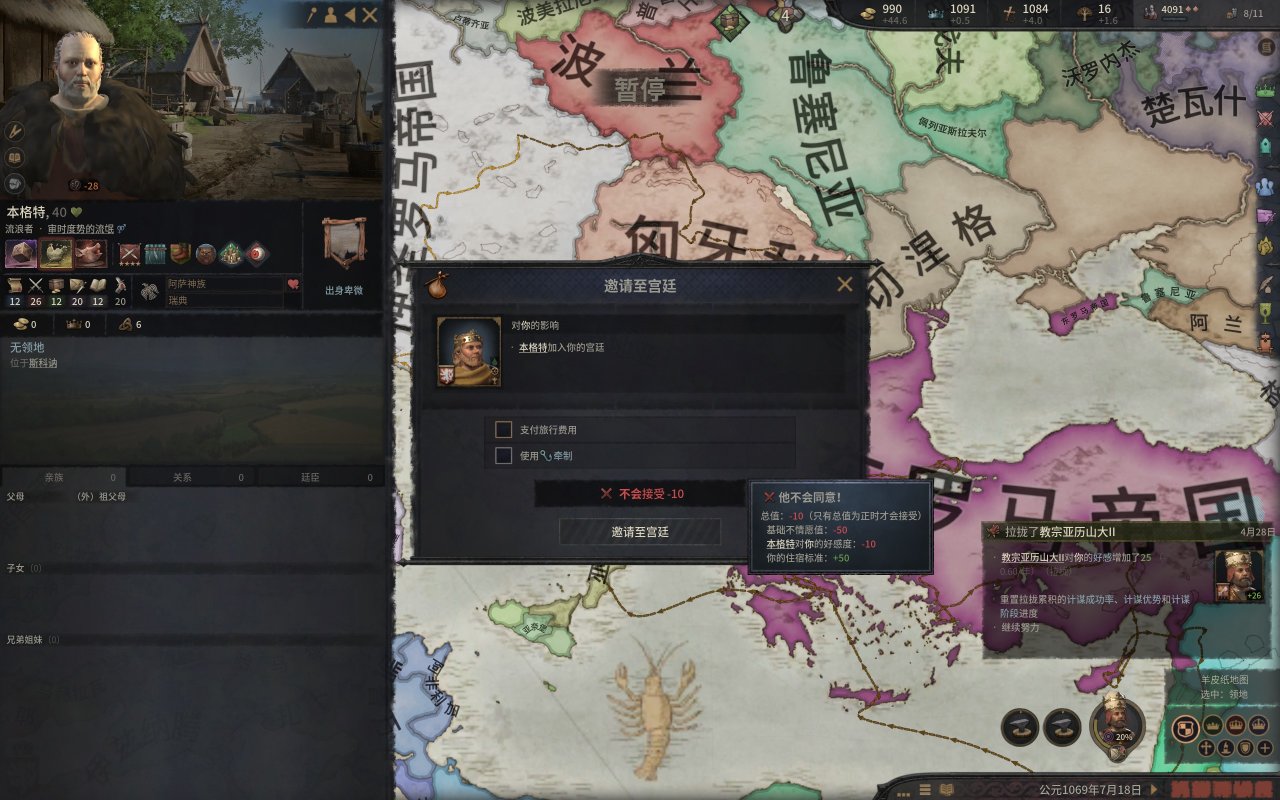 把自己不聽話的弟弟換下來,換我的朋友當我的牧首,(亞羅米爾就十點左右學識,楊是30左右,不換纔怪了,而且我還需要一個不錯的牧首去幹另一件大事)。然後與威廉結盟,然後建立我自己的廷臣團體。