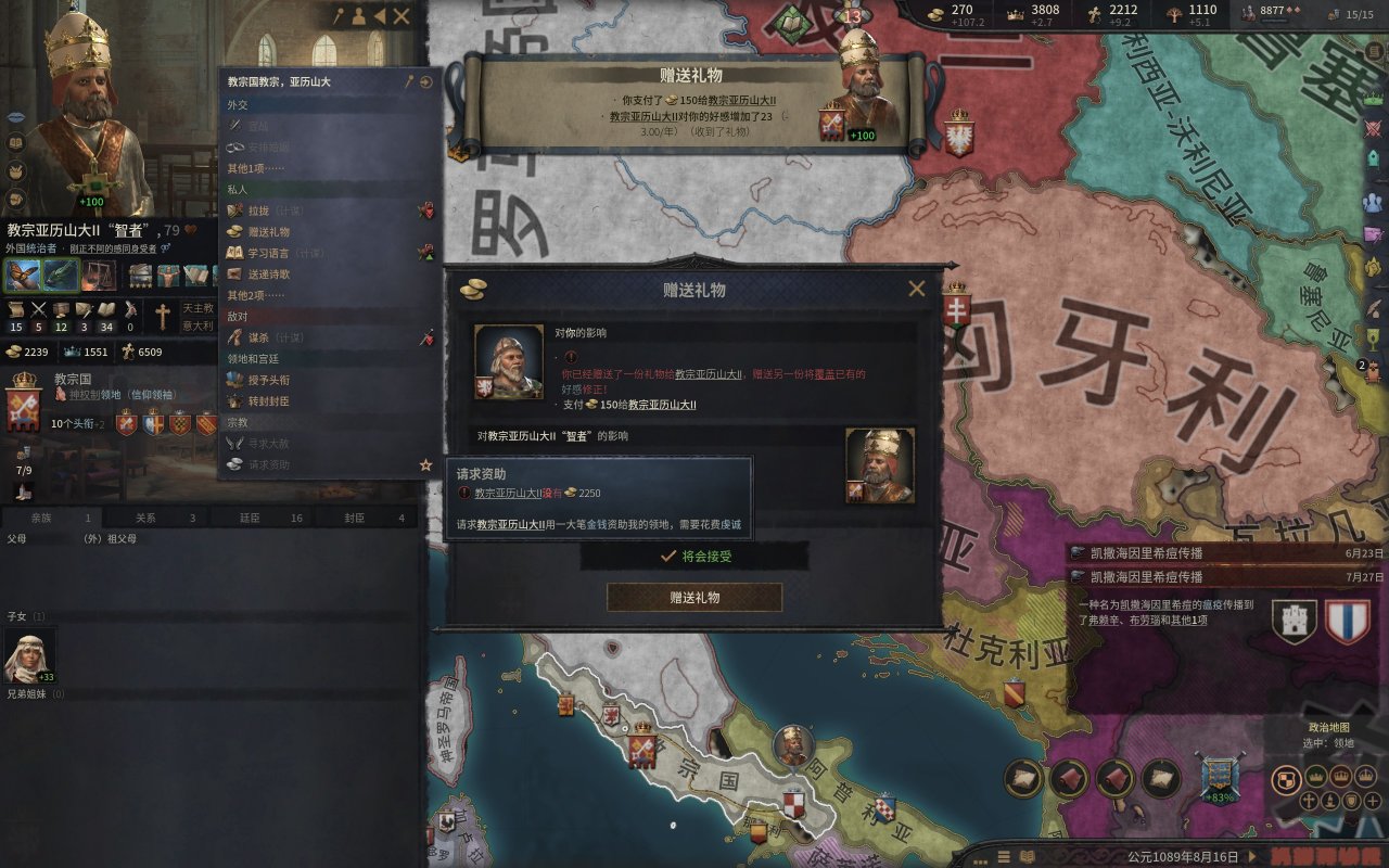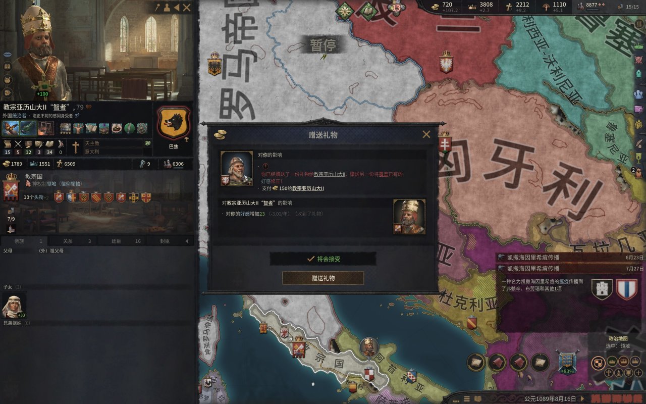 另外,如果教宗不能夠支付給你的錢的時候,你可以補給教宗一些錢,這樣也能得到不少錢,而避免其他的角色因爲不斷要錢而導致你始終不能要到錢的問題。