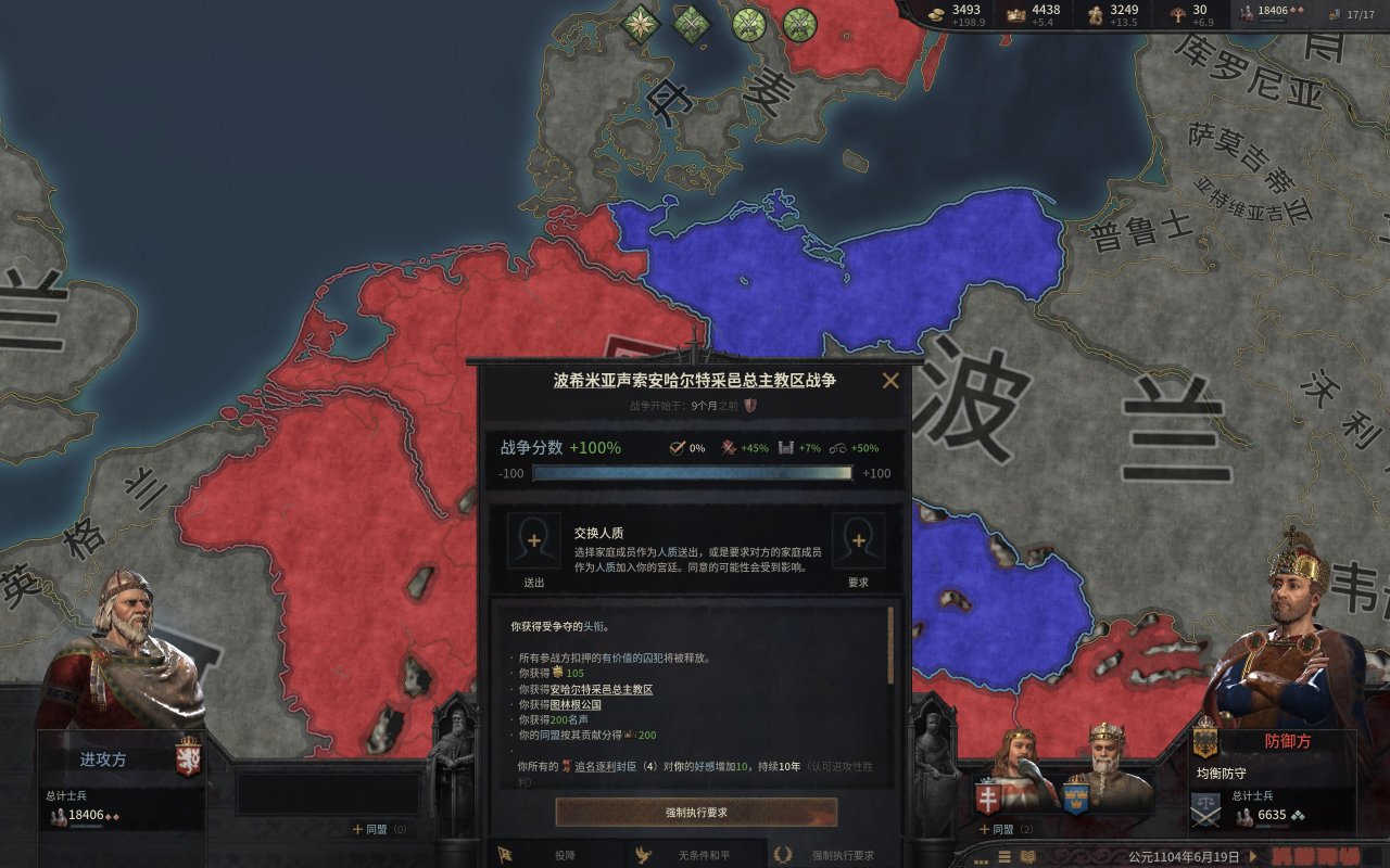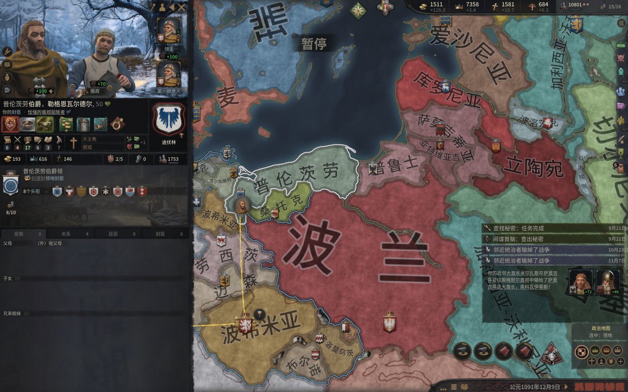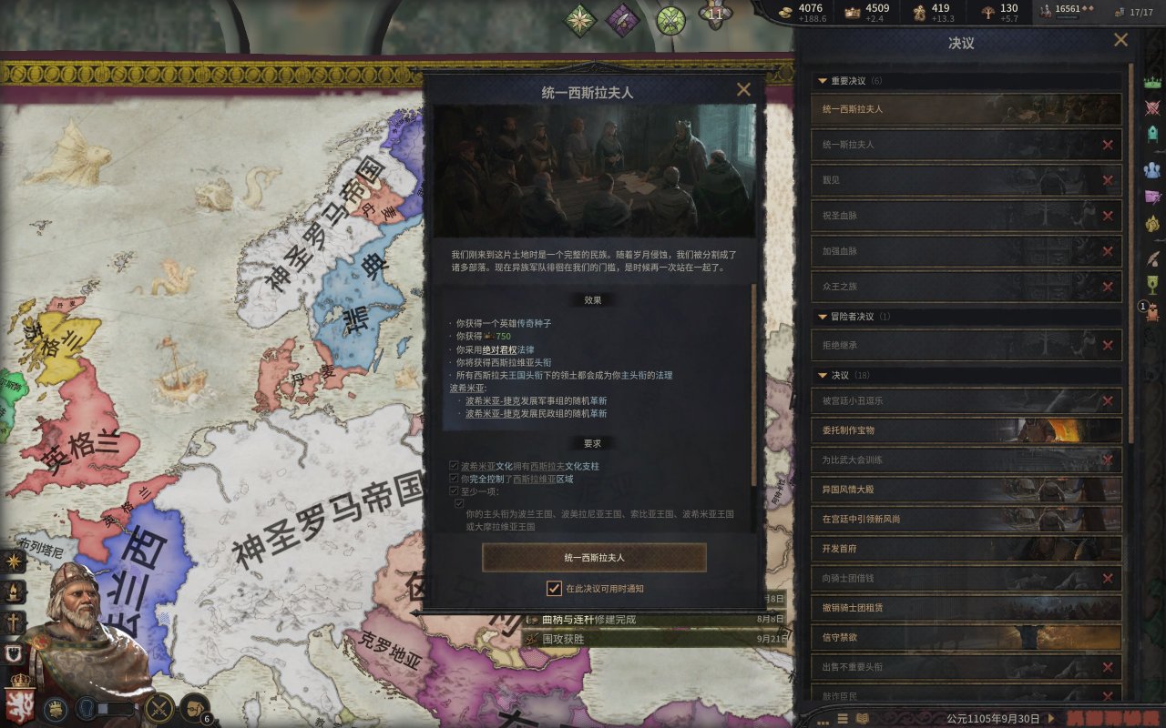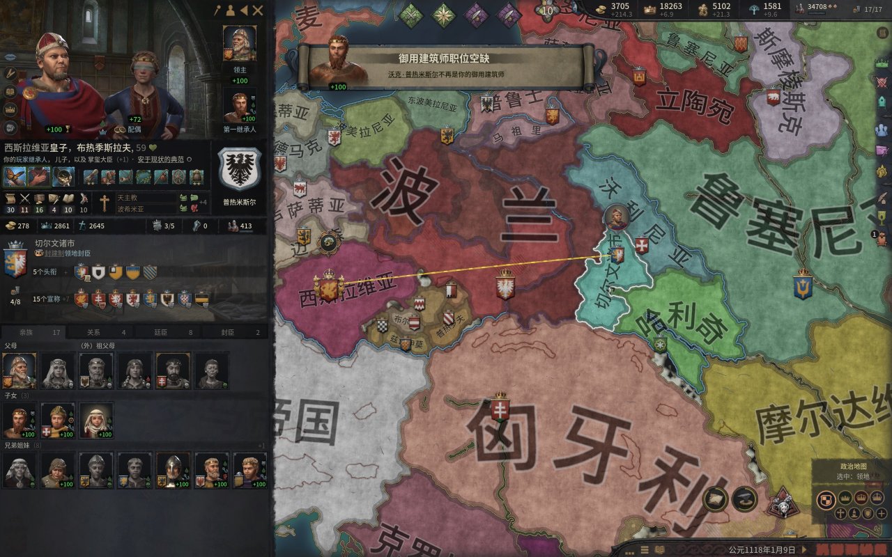 而隨着國王在針對波蘭國王的勝利後,我們成功拿下了所有波蘭王國的公爵爵位(編纂家族編年史+聖許漏洞),在不需要打獨立戰爭的情況下成立了西斯拉維亞帝國!