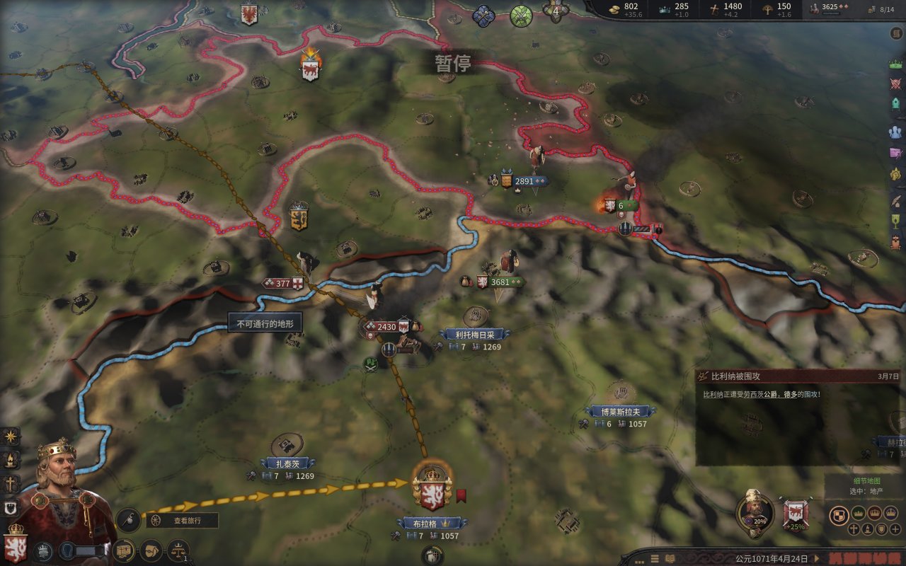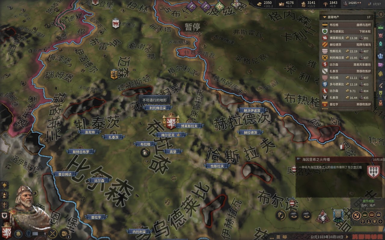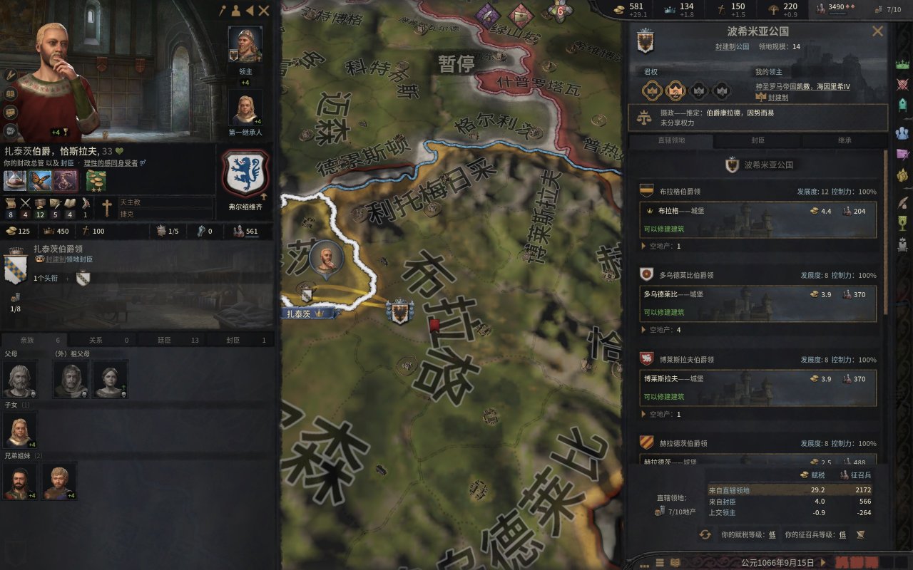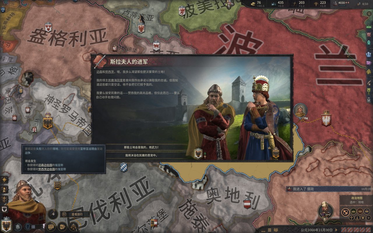 由於開局公爵有扎泰茨伯爵領的宣稱,那沒辦法了,你佔據到我想要的地了……
