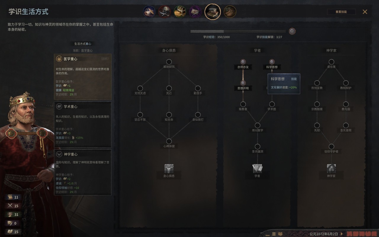 先開始走學識中線,這個目的是爲了提升發展度以及爲了後面去買宣稱。